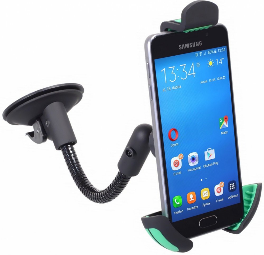 Držák telefonu s extra silnou přísavkou a ohebným ramenem, pro uchycení telefonu či navigace (až do 15 cm).