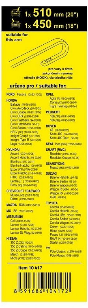 Sada dvou plochých autostěračů FLAT (řidič + spolujezdec) se speciálním uchycením. Délky stěračů a systém uchycení na ramínko jsou přizpůsobeny vybraným vozům.