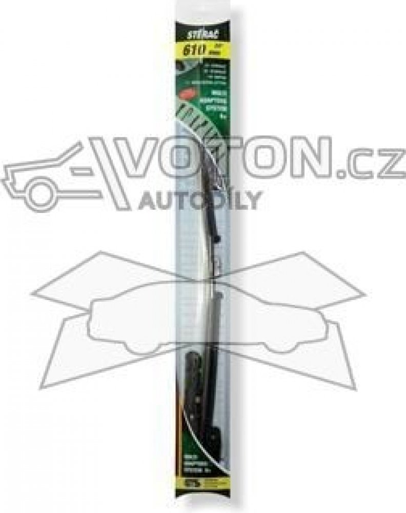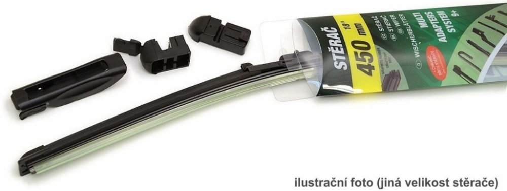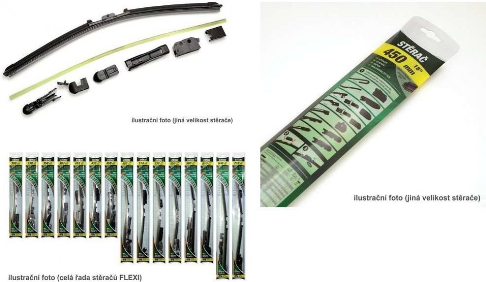 Plochý stěrač FLAT FLEXI, baleno á 1 ks v průhledném plastovém obalu. Obsahuje celou řadu adaptérů, díky kterým je snadné stěrač upevnit na většinu běžně používaných zakončení ramének stěračů. Stěrač je vybaven grafitovým břitem pro výtečné stírání.Plochý stěrač FLAT FLEXI, baleno á 1 ks v průhledném plastovém obalu. Obsahuje celou řadu adaptérů, díky kterým je snadné stěrač upevnit na většinu běž...