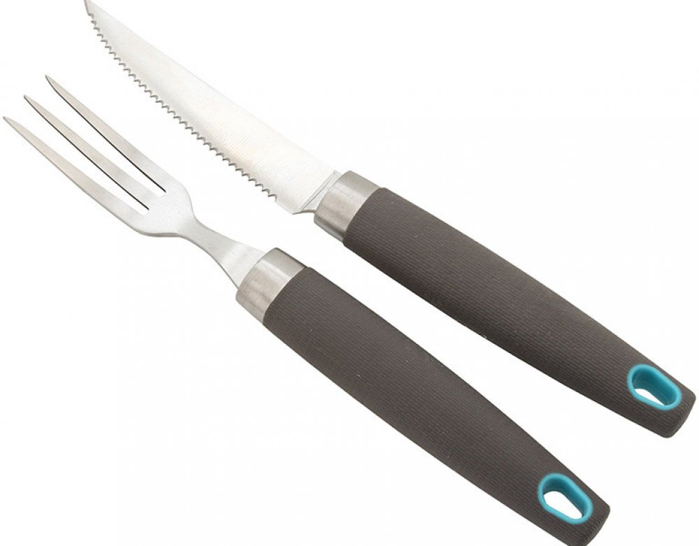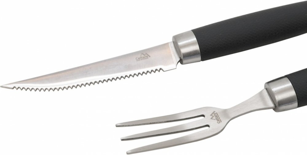 Sada se skládá z 3 hroté vidličky s rozměry 24 x 2,2 x 2 cm a z vroubkovaného nože na steaky s rozměry 25,5 x 2,5 x 2 cm.