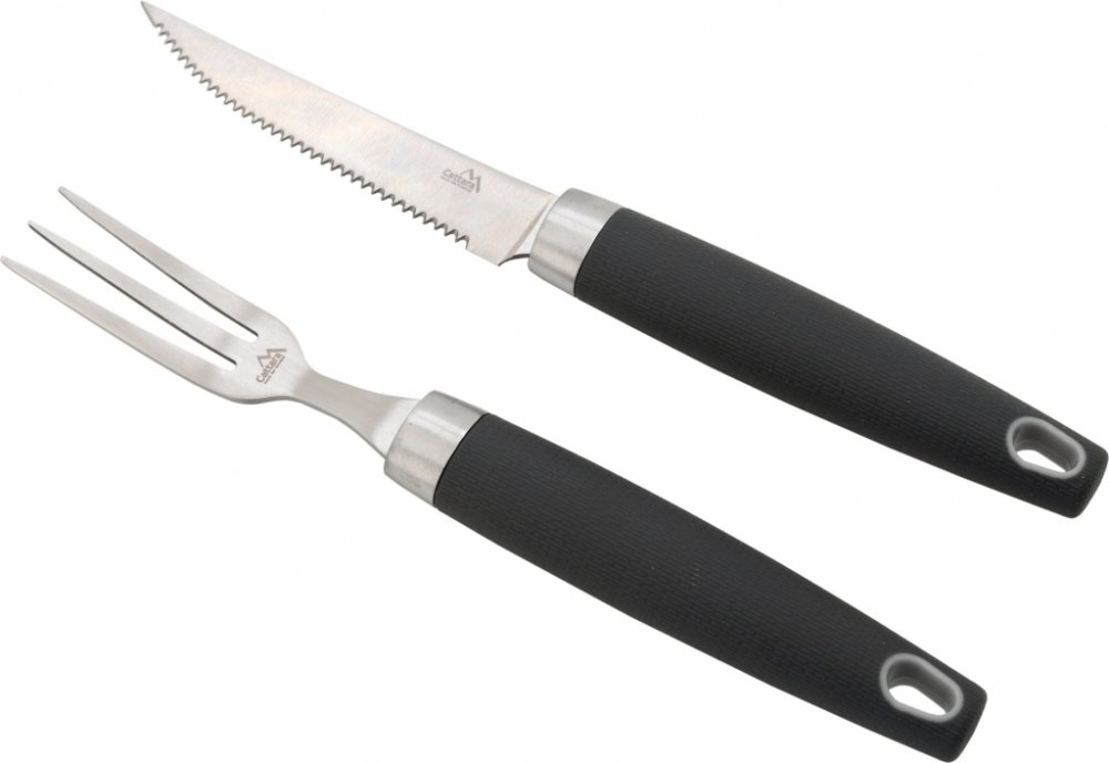 Sada se skládá z 3 hroté vidličky s rozměry 24 x 2,2 x 2 cm a z vroubkovaného nože na steaky s r