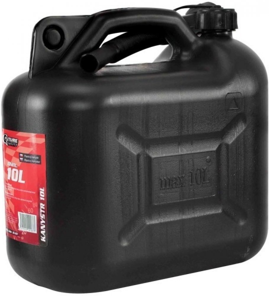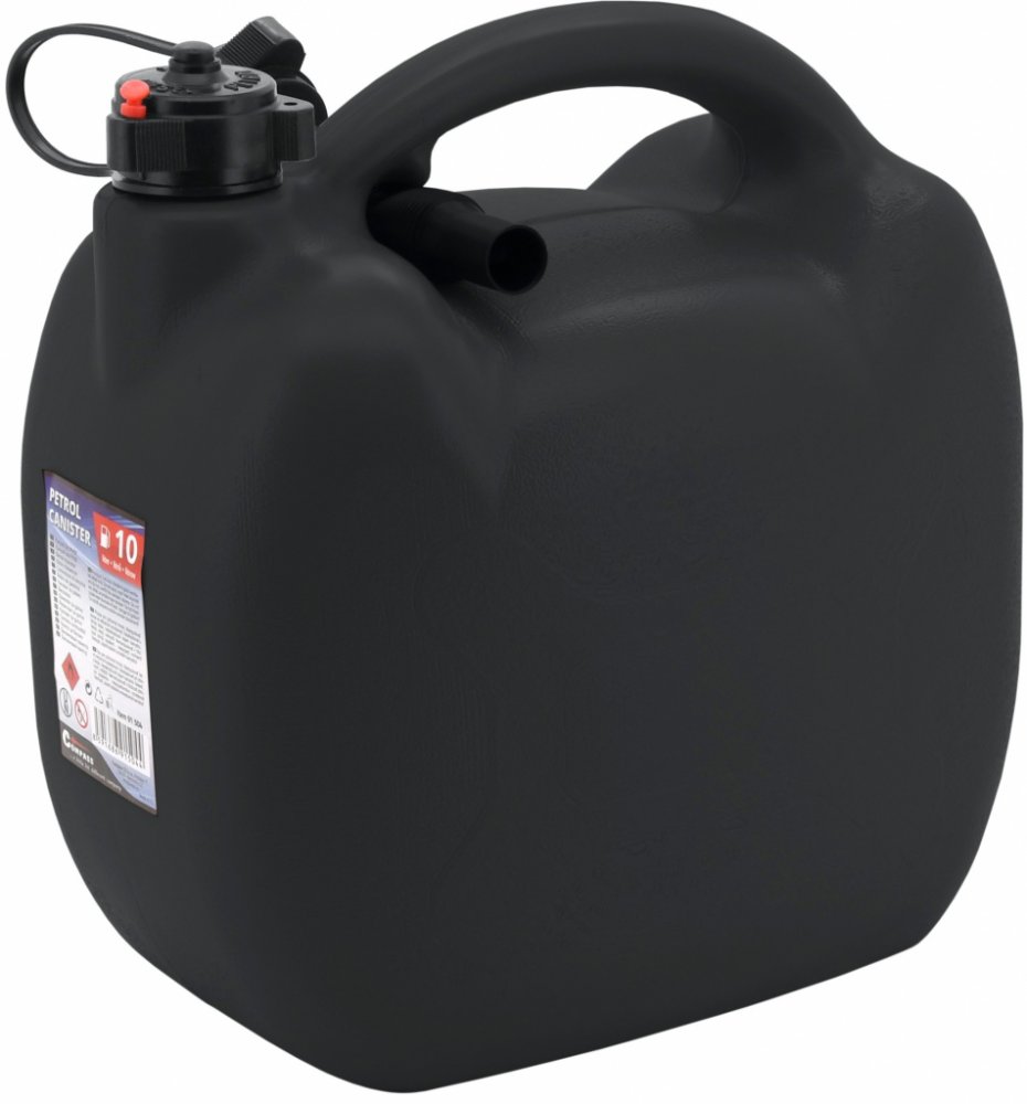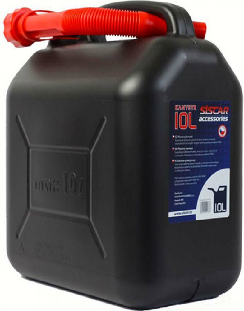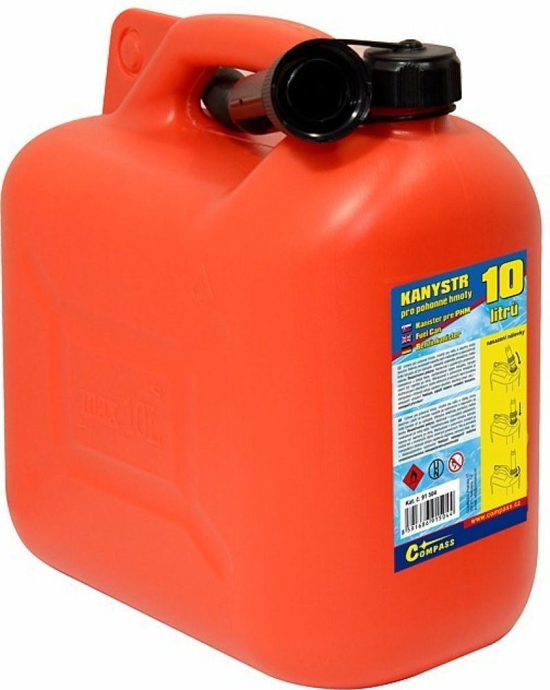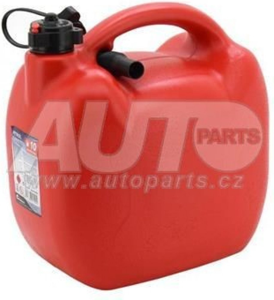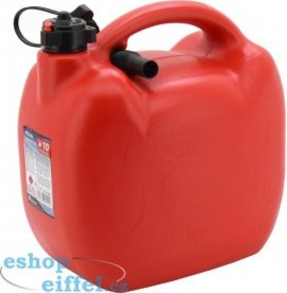 - Součástí kanystru je nálevka délky 17 cm, opatřená ohebným krčkem a víčkem, jehož součástí je kolík, se kterým je možné vyznačit druh pohonných hmot (benzín / nafta / směs paliva).