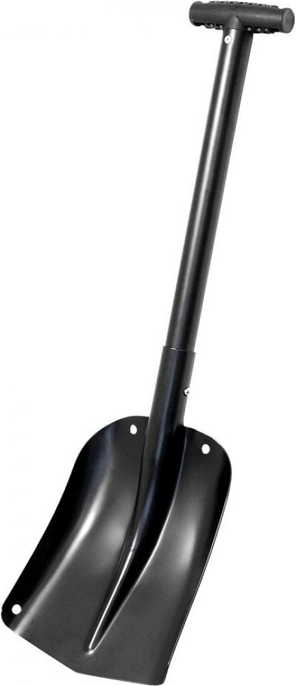 Skládací lopata na sníh, vhodné díky malým rozměrům vozit ji v kufru, celková délka 72cm, šířka lopaty 21cm, robustní hliníková konstrukce, barva černá.