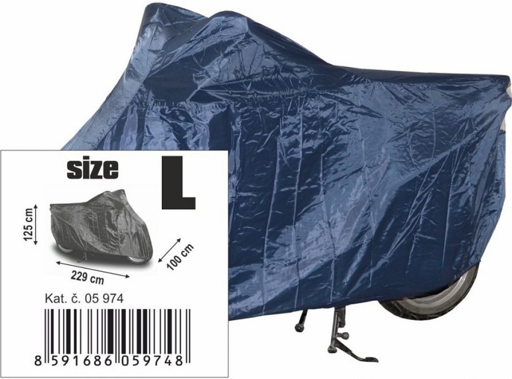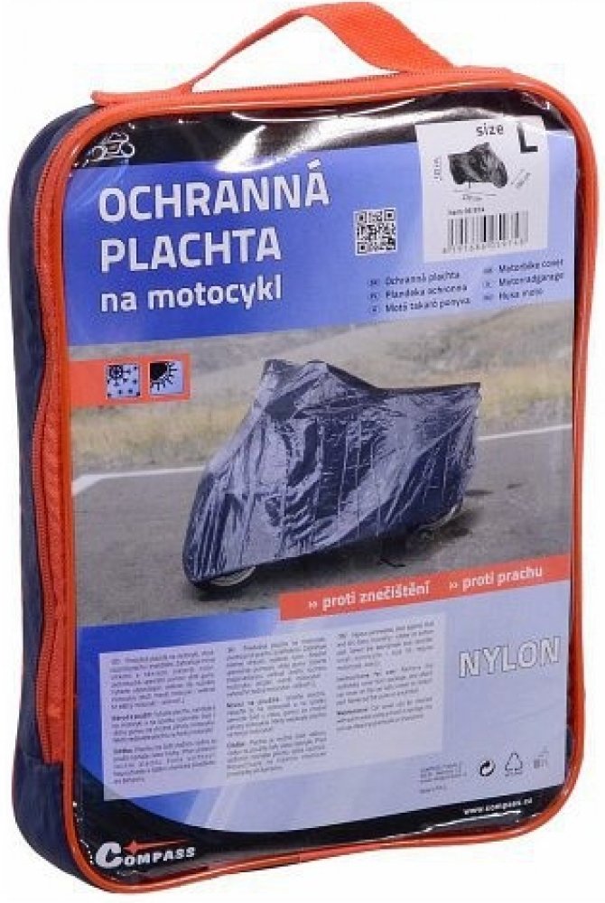 Plachta je určená k překrytí celé motorky, je praktický pomocník v létě proti prachu. Plachta má velmi dobrou odolnost proti UV záření. V zadní části je průhledná část, která zviditelňuje SPZ. Plachta je vhodná pro běžné motocykly.