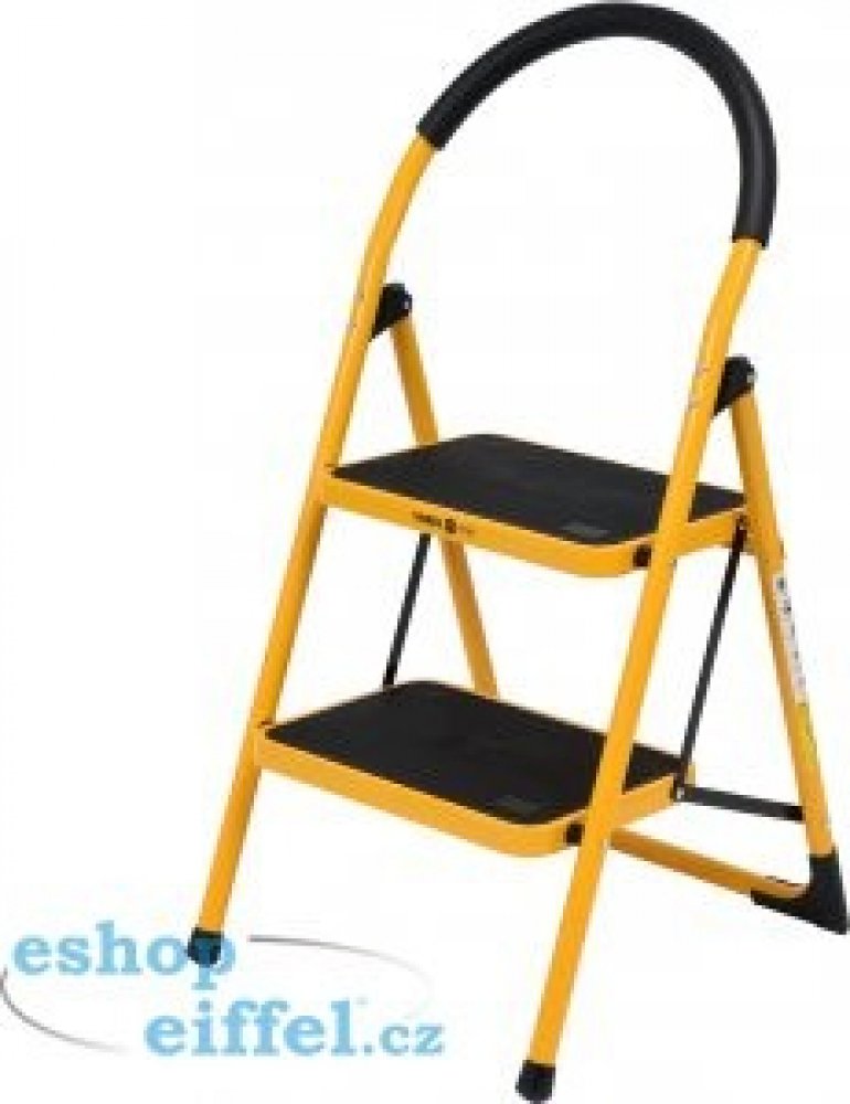 Vrchní část je doplněna měkkým potahem pro pohodlné opírání i přenášení. Schůdky mají nohy opatřené plastovým zakončením, které výrazně zvyšuje stabilitu a zabraňuje klouzání. Vestavěný zámek zabraňuje svévolnému sklopení zařízení během používání.