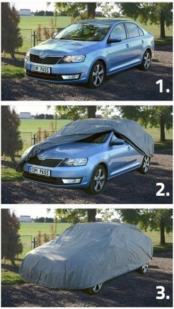 Plachta je ideální proti znečištění vozu, zabraňuje i a námraze. Jednoduché univerzální upevnění. Baleno v praktickém, na zip uzavíratelném balení, do kterého lze plachu po použití snadno složit a uskladnit.