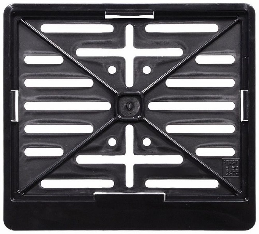 Plastová podložka pod státní poznávací značku nebo tabulku registrační značky, otvory pro univerzální montáž. Určeno pro motocykly (rozměr značky 200 x 160 mm).