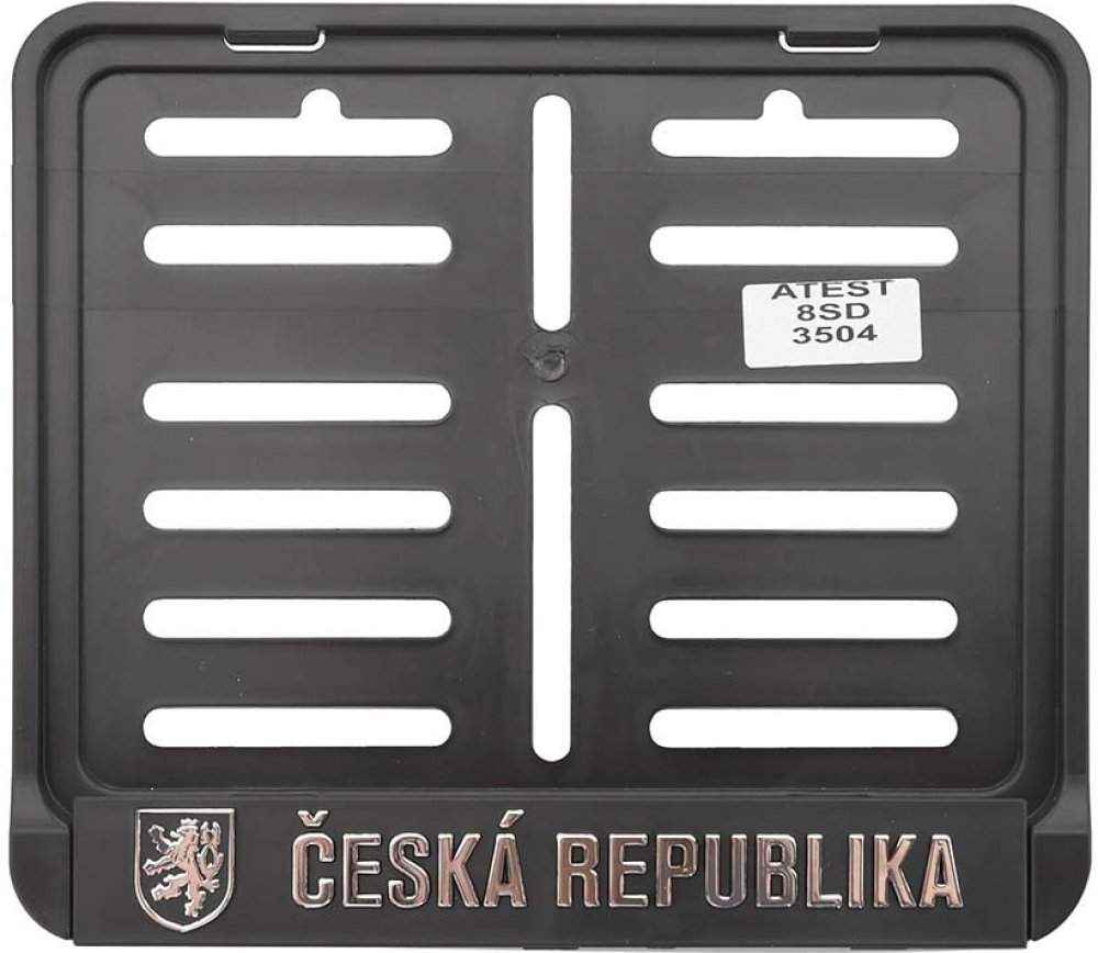 Podložka pod SPZ pro motorku • ČR 3D Podložka určená pod státní poznávací značku pro motocykly s emblémem lva a nápisek Česká republika. Parametry a specifikace - velikost 21,5 x 19 x 1 cm - velikost SPZ 20 x 16 cm