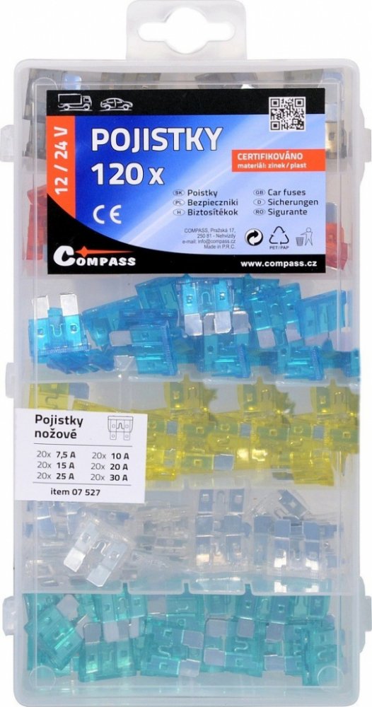 Compass Pojistky nožové sada 120ks 7,5/10/15/20/25/30Amp