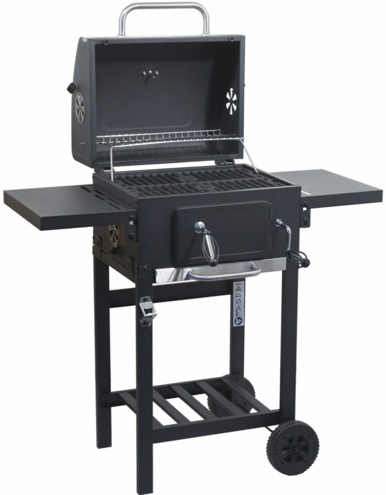 Další předností grilu je rošt na uhlí s nastavitelnou výškou, grilovací prostor je tak možné regulovat pomocí mechanismu na přední straně, dle požadávků daných pokrmů. Dvířka na čelní straně grilu významně usnadňují doplňování uhlí. Pro usnadněné číštění je potom určena zásuvka na popel ve spodní části grilu.