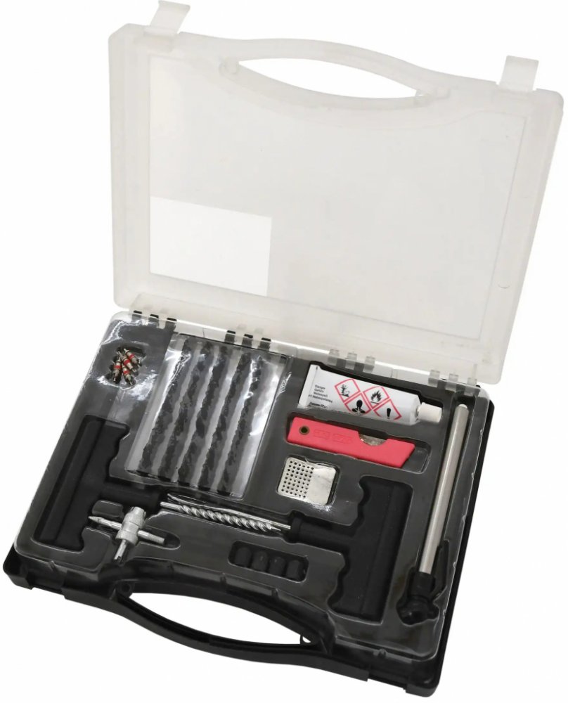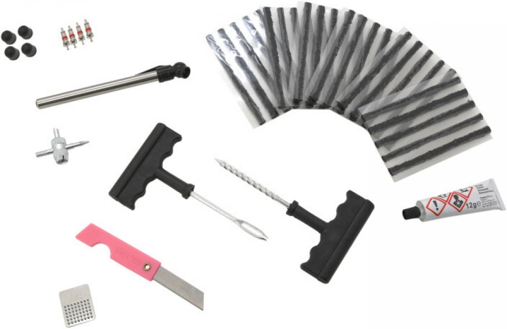 Sada na rychlou opravu bezdušových pneumatik bez nutnosti demontáže pláště z disku. Tato sada je vhodná jak pro automobily, tak pro motocykly, čtyřkolky a další bezdušové pneumatiky.