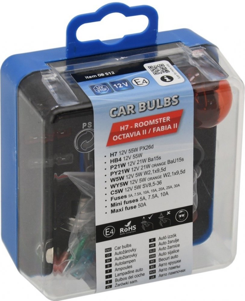 Plastová krabička náhradních autožárovek od firmy Compass.