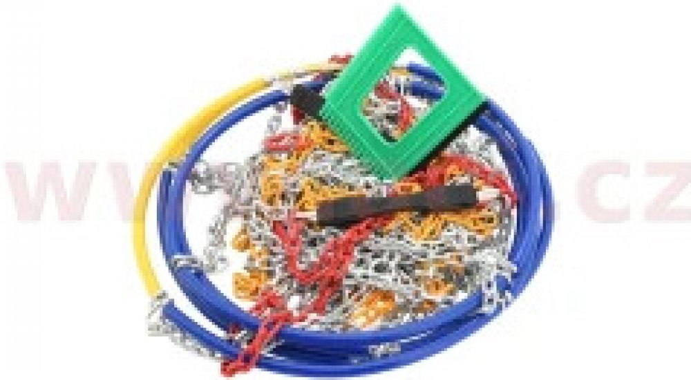 Sněhové řetězy se zesílenými oky, pro osobní vozidla do hmotnosti 2200 kg, splňující evropské normy včetně v Rakousku vyžadované "ÖNORM V 5117".