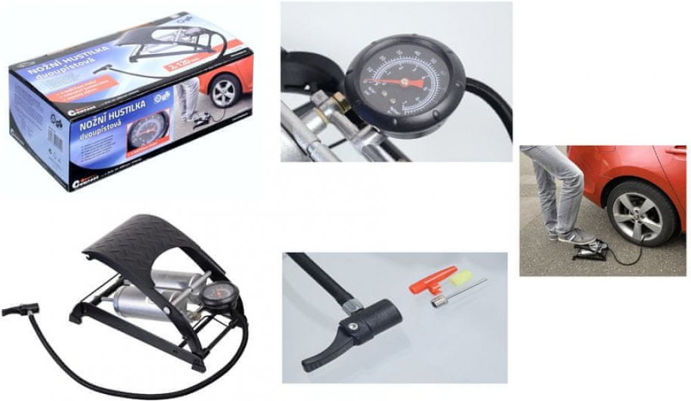 Hustilka nožní s manometrem dvoupístová TÜV/GS 2x120mm