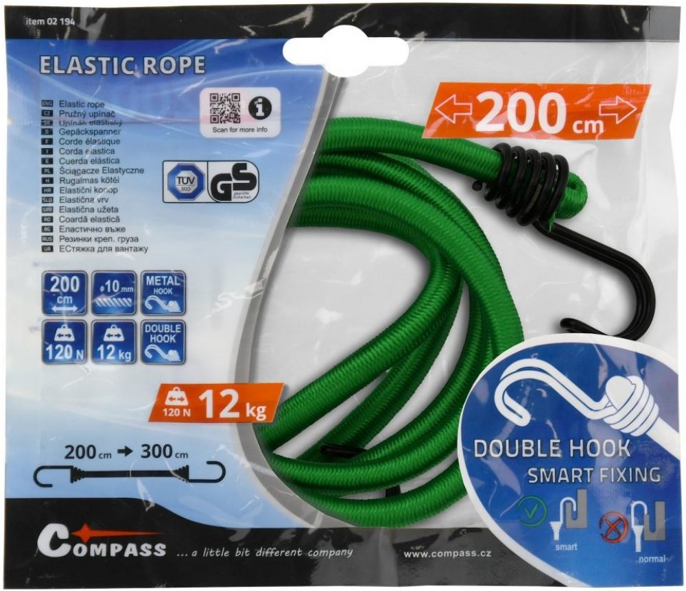 Technická data délka 200 cm průžez 10 mm hák 2x zdvojený, kovový pevnost v tahu 120Nbalení 1ks barva zelenáhomologace TÜV/GS