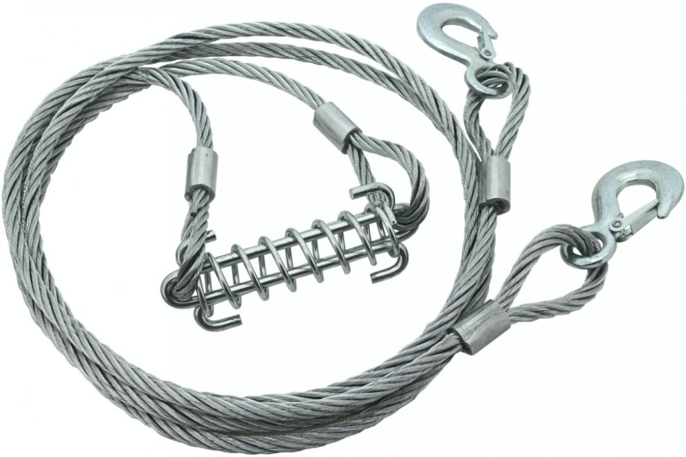 Lano je spleteno z vysoce kvalitních ocelových vláken, která zajišťují vysokou odolnost proti přetržení. Na koncích je lano opatřeno ocelovými háky s bezpečnostní pojistkou pro rychlé a bezpečné upevnění.