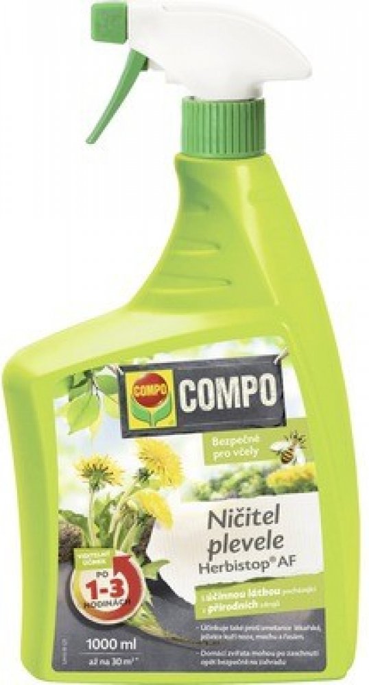 COMPO Ničitel plevele Herbistop AF s účinnou látkou pocházející z přírodních zdrojů likviduje jednoděložné i dvouděložné plevele, mechy a řasy v průběhu několika málo hodin. Pro použití mezi okrasnými květinami a dřevinami, ovocnými rostlinami a zeleninou. BEZ GLYFOSÁTŮ