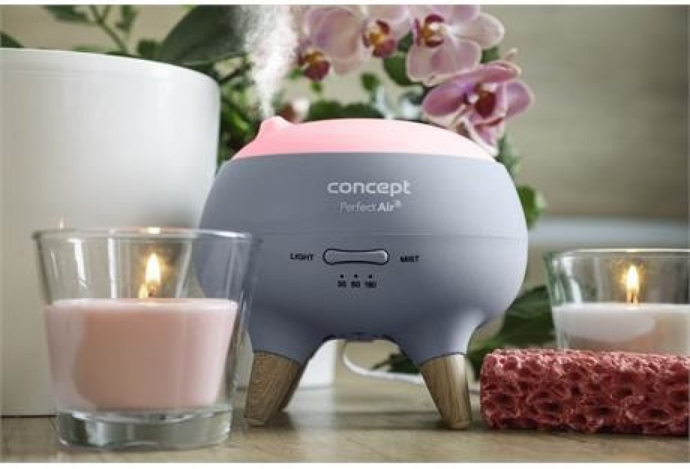 Aroma difuzér Concept DF1010 Perfect Air má nádržku na vodu o velikosti 250 ml, která vydrží až na 9 hodin. Poradí si se suchým vzduchem v dané místnosti. Perfektně zvlhčí a současně provoní prostory. Má atraktivní minimalistický design, takže se stane rovněž ozdobou vašeho interiéru.