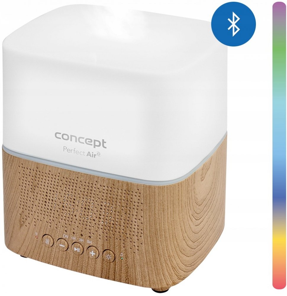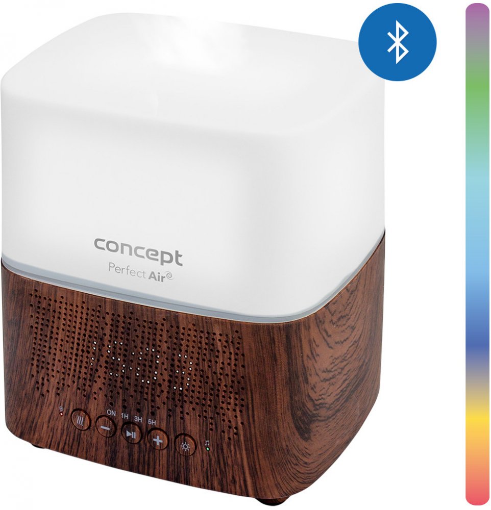 Atraktivní aroma difuzér Concept DF2011 okouzlí svými funkcemi. Kromě aromaterapie ho můžete využít jako zvlhčovač, Bluetooth reproduktor nebo budík. S nádobkou o objemu 300 ml nabízí až 10 h nepřetržitého provozu. I přes svůj minimalistický design je vhodný do místností o velikosti až 50 m2. Je zpracován z kvalitního antibakteriálního materiálu, který zaručuje bezpečný provoz.