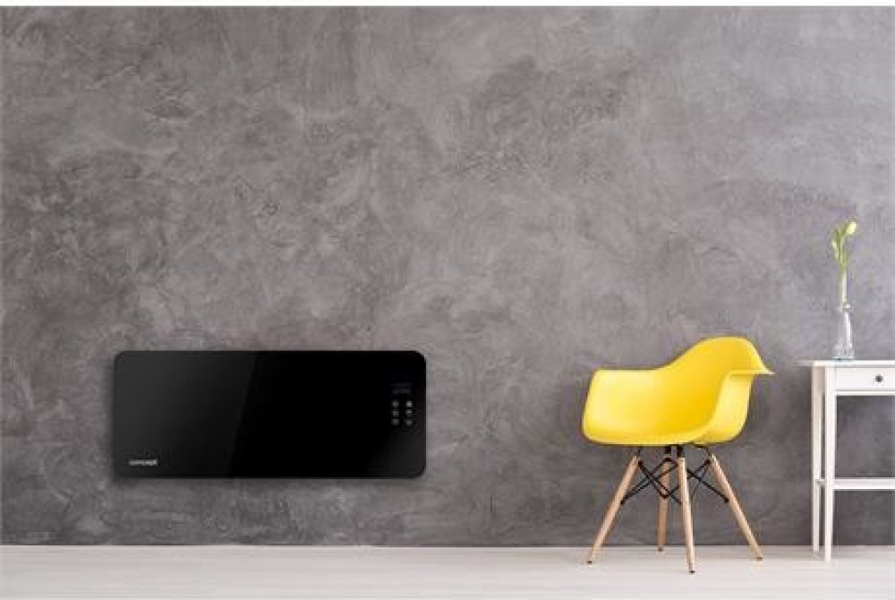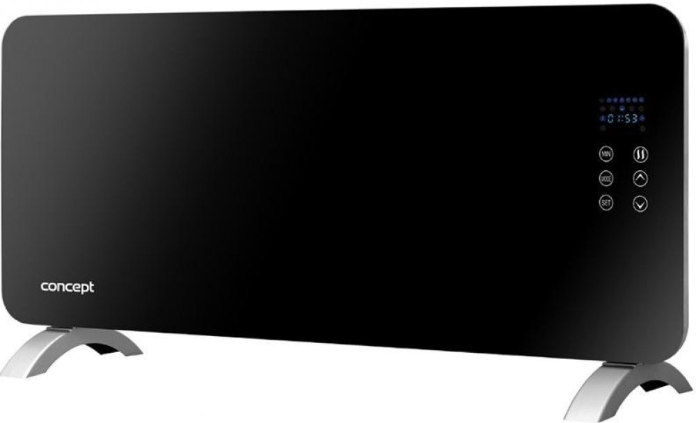 Konvektor skleněný elektrický Concept KS4010 Pohodlné ovládání LED displej Elegantní a praktický LED displej Konvektor je vybavený podsvíceným LED displejem, na kterém nastavíte požadovanou teplotu, kterou bude konvektor automaticky dodržovat. Pohodlné ovládání K pohodlnému ovládání poslouží dálkový ovladač. Můžete si tak přitopit z pohodlí Vaší pohovky. Elegantní a praktický Máte moderně zařízený byt a uvažujete o koupi konvektoru? KS4010 je perfektní volbou. Je krásným doplňkem do každého interiéru díky černému a luxusnímu tvrzenému sklu. Pokud budete chtít konvektor pověsit na zeď, využijete montážní sadu, která je součástí balení. Konvektor pověšený na zdi vypadá jako krásný designový prvek. Můžete si ovšem vybrat i variantu, kdy přidáte přídavné nožičky a můžete ho používat jako volně stojící. Teplota dle Vašich představ Konvektor nabízí dva stupně nastavení výkonu 1000/2000 W. Za necelou hodinu zvýšíte teplotu o 5°C v prostorech až o velikosti 20m². Nemusíte se bát umístit konvektor kdekoliv ve Vaší domácnosti a to i v prostorech, kde je vlhko. Díky voděodolné ochraně IP24 můžete bez obav topit i v koupelně. Technické parametry: Dálkové ovládání Materiál: tvrzené sklo LED displej Časovač, týdenní režim Vhodný do prostor o velikosti 20 m² Voděodolná ochrana: IP24 Termostat: 5 – 40°C 2 stupně výkonu Příkon: 1000/2000 W Možnost montáže na zeď Délka kabelu 150 cm (i s vidlicí) Kabel se nachází na pravé straně Rozměry produktu s nožičkami (v x š x h): 43,5 x 92 x 24 cm Rozměry produktu bez nožiček (v x š x h): 38,5 x 92 x 9,5 cm Barva: černá