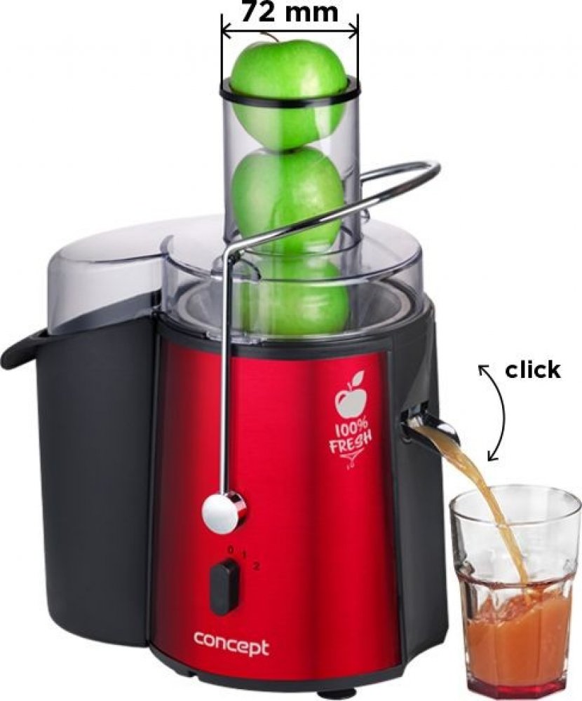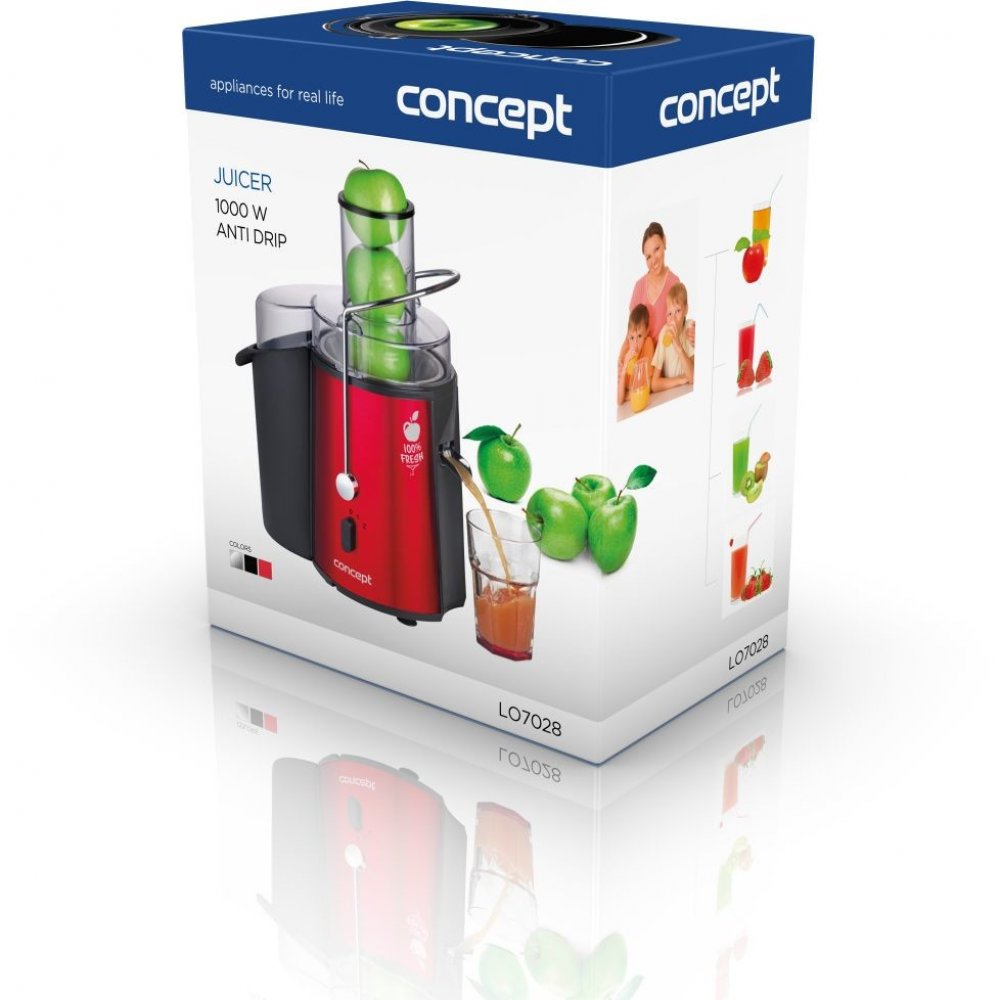 Odšťavňovač FRESH Concept LO7028 Nejprodávanější odšťavňovač 2019 Nejprodávanější odšťavňovač v sekci odstředivých odšťavňovačů v roce 2019 na českém trhu. Jsme rádi, že si řada zákazníků vybrala v loňském roce právě naše odstředivé odšťavňovače LO7026/27/28. Patříme mezi značky, které se zaměřují na zdravý životní styl a snažíme se přinášet do rodin produkty, které zlepšují zdraví. Ohromující výkon Ovocné šťávy a koktejly z ovoce vynikají nejen svou lahodnou chutí, ale především vysokým obsahem vitamínů, minerálů a dalších biologicky významných látek. Potěšte se lahodnou chutí 100% ovocné nebo zeleninové šťávy z odšťavňovače Concept. Odšťavňovač Concept s příkonem 1000 W Vám umožní připravit najednou až 1 l čerstvé šťávy. XXL plnicí otvor Už Vás nebaví trávit v kuchyni veškerý svůj čas? Chcete mít zdravou čerstvou šťávu denně na svém stole? Tak právě pro Vás je tu lis na ovoce a zeleninu od Conceptu. Díky svému 72 mm velkému plnicímu otvoru ušetříte spoustu času. Nemusíte se zdržovat zbytečným krájením ovoce, zvládne i celé plody. Ani kapka nazmar! Praktický ANTIDRIP Vám umožní výměnu nádoby na šťávu, aniž byste si ušpinili kuchyňskou linku nebo museli přestat odšťavňovat. Jednoduše překlopíte antidrip, vyměníte sklenici a zase odklopíte uzávěr. Jak jednoduché! Zvládne cokoli Pro odšťavňování bez námahy nabízí odšťavňovač 2 nastavení rychlosti pro měkké plody s vyšším obsahem šťáv (citrusy, broskve atd.) a tvrdé plody s nižším obsahem šťáv (mrkev jablka atd.). Z počátku by měl být nastaven na rychlost nižší a dle druhu ovoce či zeleniny jeho rychlost zvýšit. Jistě oceníte u odšťavňovače rozebiratelnost a snadné čištění. Bezpečnost O bezpečnost při práci se nám stará důmyslný bezpečnostní systém, který zabrání zapnutí spotřebiče pokud není vše ve správné poloze. Pro větší bezpečnost lze přístroj zapnout až po uzavření nádoby nerezovou svorkou. Díky protiskluzovým nožičkám se při přípravě džusů drží spotřebič pevně na lince a tím zajistí bezpečnou přípravu nápojů. Vyberte si ten pravý Díky atraktivnímu vzhledu odšťavňovač už nebudete schovávat do skříně. Můžete si vybrat hned ze tří barevných variant. Základní stříbrná, grafitově černá nebo třeba přitažlivá červená? Volbu necháme jen na Vás. Základní popis: Velikost plnicího otvoru: 7,2 cm Přístroj je plně rozebiratelný a díky tomu se snadno čistí Nádoba na šťávu: 1 l BPA free Zásobník na dužninu: 1,8 l Snadné čištění Bezpečnostní systém Nůž z nerezové oceli Antidrip Pěchovadlo Protiskluzové nožičky Prostor pro uložení kabelu Barva: červená + černá Rychlost: max. 16.800 ot./min. Příkon: 1000 W Napětí: 220 - 240 V