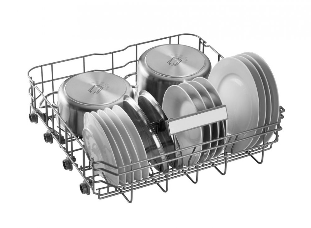 Variabilní příborová zásuvka vám umožní mytí i rozměrnějšího nádobí. Zásuvku můžete jednoduše přesunout, takže vám vznikne větší prostor v horním koši. Těžko budete hledat nádobí, které by se do myčky nevešlo.