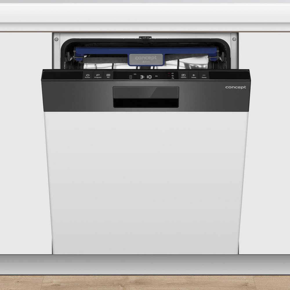 Vestavná myčka nádobí Concept MNV8060ds je součástí designové linie TITANIA, která se vyznačuje tmavým nerezem. Disponuje výškově nastavitelným horním košem, variabilní příborovou zásuvkou a vnitřní kapacitu na 14 sad nádobí. Nabízí 8 mycích programů, funkci pro zvýšenou účinnost mytí a sušení, pro zkrácení času mycího programu a možnost odloženého zapnutí s nastavením až na 24 hodin. Kombinací s ostatními spotřebiči Concept stejné designové linie dosáhnete dokonale sladěné kuchyně.