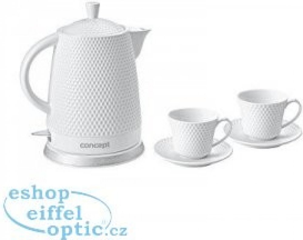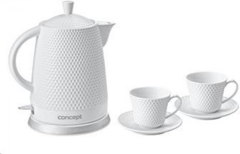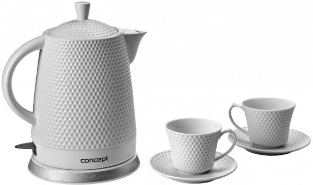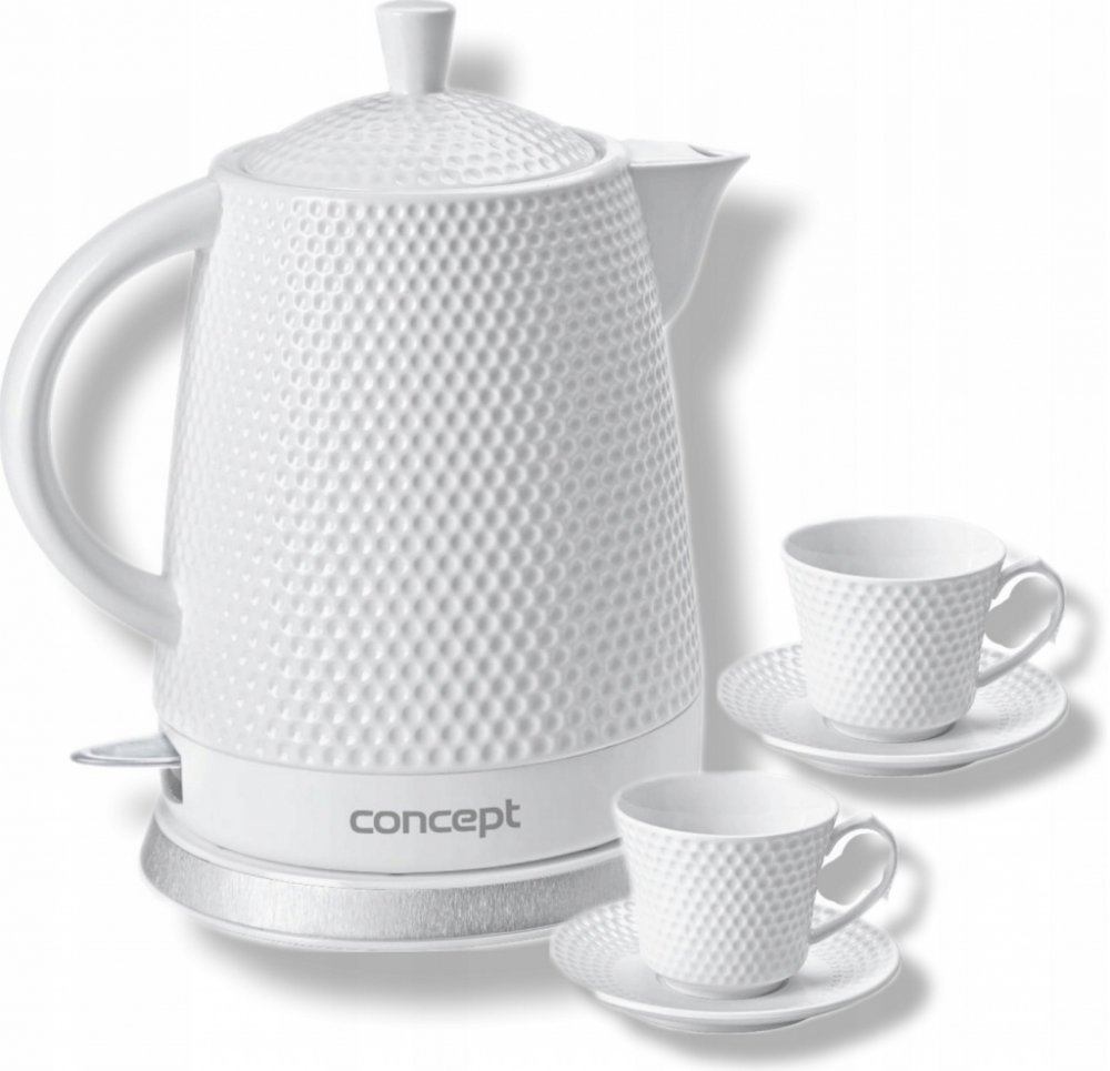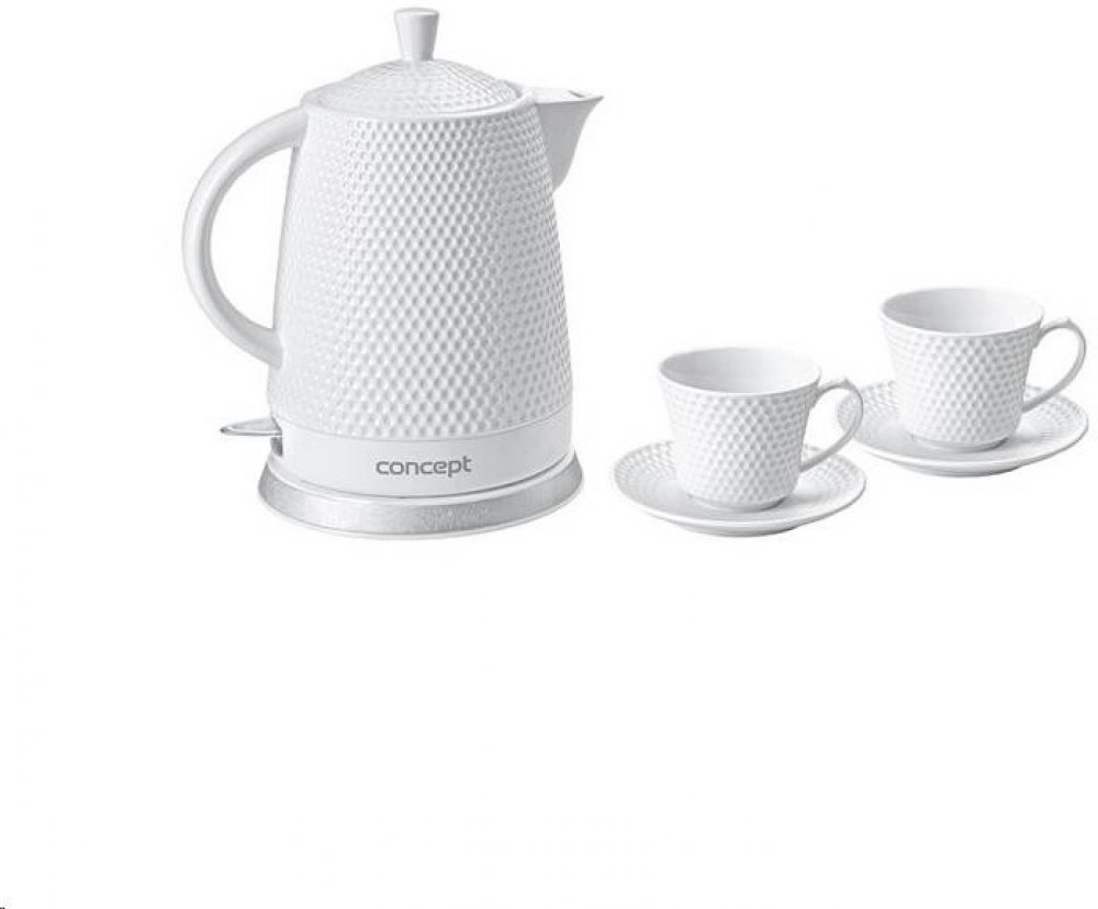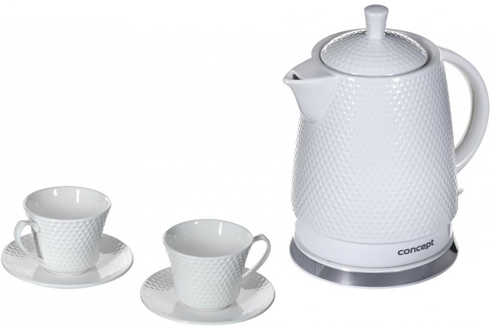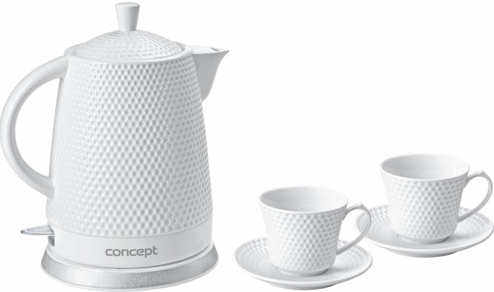 Keramická rychlovarná konvice RK0040 o objemu 1,5 l se stane nejen užitečným pomocníkem, ale díky modernímu 3D plastickému dekoru i ozdobou vaší kuchyně. Využít ji můžete jako klasickou konvici při servírování svého oblíbeného čaje přímo na stůl. Aby byl zážitek z pití čaje dokonalý, dostanete jako dárek ke konvičce dva šálky s podšálky ve stejném designu jako konvička.