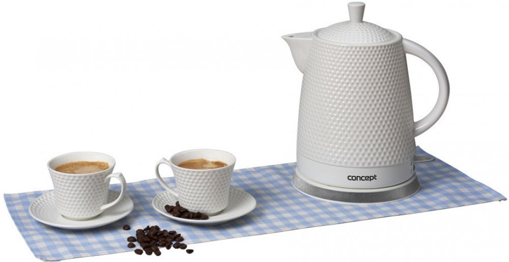 Konvice je vyrobena z kvalitní, velmi odolné a zdravotně nezávadné keramiky, která vyniká snadnou a rychlou údržbou. Uvařená voda je bez zápachu a díky keramickému materiálu, který skvěle izoluje teplo, se v konvici udrží dlouho teplá. Je osazena konektorem britské značky STRIX, který je zárukou nejvyšší kvality a prodlužuje životnost spotřebiče.