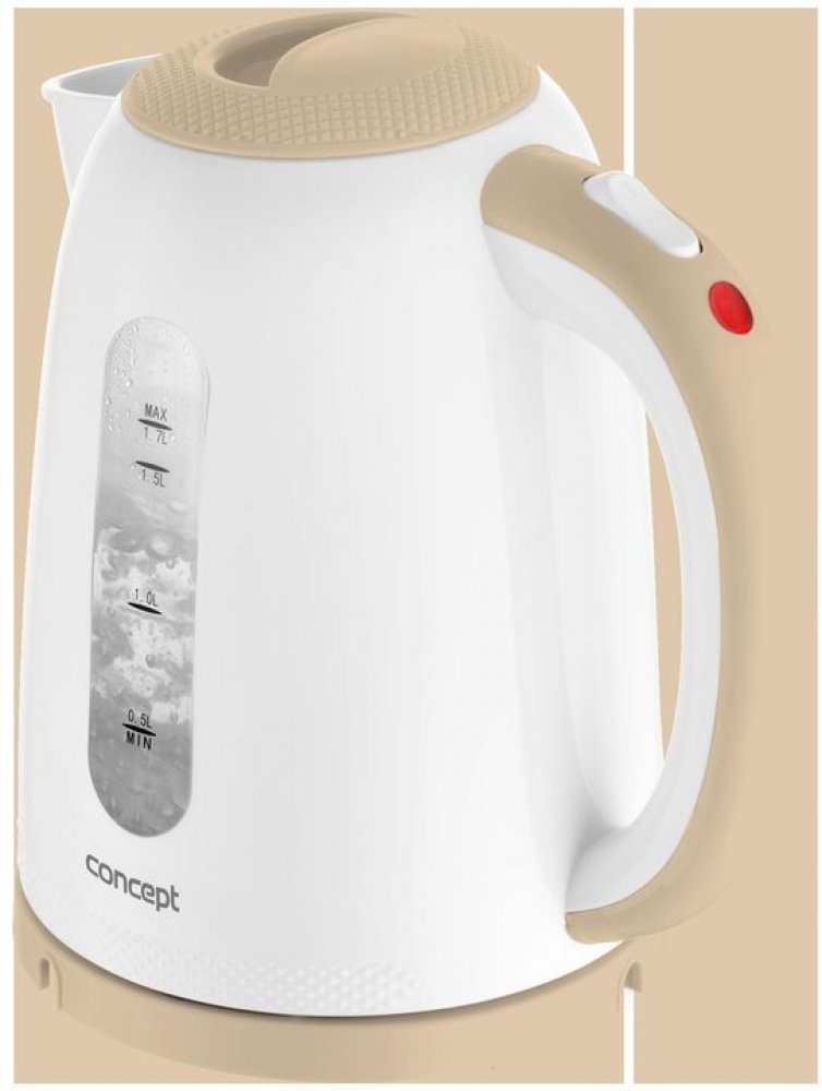 Rychlovarná konvice 1,7 l Concept Palette RK2331 Objem 1,7 l Otočná o 360° Snadná údržba Objem 1,7 l Pokud máte větší rodinu, tak objem konvičky 1,7 l je naprosto dostačující, aby nikdo nemusel na čaj nebo kávu čekat. Velký vodoznak umožní snadno kontrolovat množství vody v konvici. Nádoba konvice je vyrobena z kvalitního plastu. Praktická ve všech směrech Co víc si přát, než konvičku, která se udržuje téměř sama. Široké tělo konvice umožňuje její snadné čištění, i sítko proti vodnímu kameni lze snadno vyjmout a umýt. Vaše konvice tak bude pořád zářit čistotou. Výhodou podstavce otočného o 360° je, že konvici můžete na podstavec postavit z jakéhokoli úhlu. Tvar podstavce Vám umožní uschování přívodního kabelu. Pohodlné nalévání a vylévání vody Optimálně tvarované ústí konvice Vám zajistí vždy přesnou ruku při nalévání vody do šálku. Plnění konvice vodou není také žádný problém. Konvice je vybavena dvojnásobným bezpečnostním systémem. Ten Vám zaručí, že se konvice po dovaření vody sama vypne. Zapomněli jste nalít vodu do konvice? Žádný problém, konvice se vypne a po zchladnutí ji můžete znovu použít. Vyberte si tu svou Chcete podtrhnout svou individualitu nebo hledáte jen designovou vychytávku na doladění Vaší kuchyně? Můžete si vybrat ze 6 barev. Volba je jen na Vás. Technické parametry: Objem: 1,7 l Bezspirálová nerezová nádoba Moderní 3D plastický dekor Kvalitní značkový konektor Strix Dvojnásobný bezpečnostní systém Automatické vypínání Vodoznak Barva: béžová Příkon: 1850-2200 W Napětí: 220-240 V