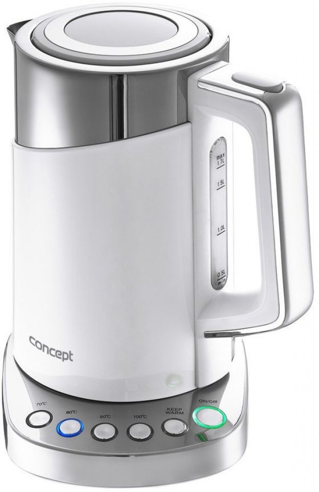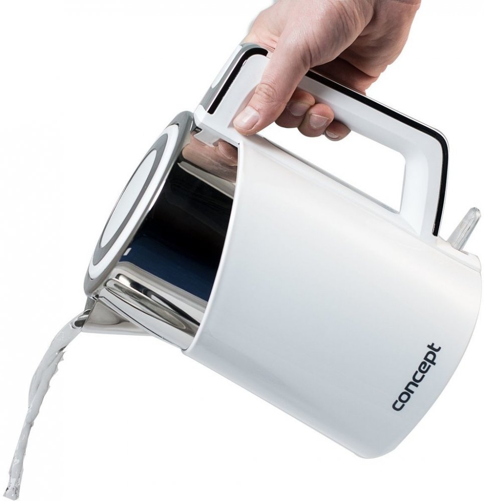 Nerezová rychlovarná konvice Cool Touch 1,7 l s termoregulací Concept RK3170 WHITE Už se nespálíte Regulace teploty od 70°C do 100°C Kvalitní konektor Už se nespálíte Konvice RK3170 je chytře vymyšlena tak, abyste se o ni nespálili. Elegantní lesklý nerez je doplněn o inovativní bílý povrch Cool Touch, který se nezahřívá, takže máte jistotu, že vaše konvice zůstane stále chladná na dotek. Co si připravíte Vy? Jednou z hlavních výhod konvice je funkce regulování teploty: můžete si vybrat 70 °C, 80 °C, 90 °C nebo 100 °C. Jednoduše si vychutnejte dokonalý nápoj. Konvička je také vybavena funkcí KEEP WARM – udržování teploty po dobu 2 hodin. Horká voda tak pro Vás bude připravena kdykoli. Kvalitní zpracování Konvička je vyrobena z kvalitního nerezu, který vydrží téměř cokoli. Tento materiál vám zaručí, že Vaše konvice nezrezatí a nijak nepoškodí Vaše zdraví. Značkový britský konektor Strix navíc prodlouží životnost Vaší konvice díky kvalitě použitých materiálů. Praktická ve všech směrech Co víc si přát, než konvičku, která se udržuje téměř sama. Široké tělo konvice umožňuje její snadné čištění, i sítko proti vodnímu kameni lze snadno vyjmout a umýt. Vaše konvice tak bude pořád zářit čistotou. Výhodou podstavce otočného o 360°C je, že konvici můžete na podstavec postavit z jakéhokoli úhlu. Tvar podstavce Vám umožní uschování přívodního kabelu. Bezpečnost na prvním místě Konvice je vybavena trojnásobným bezpečnostním systémem. Ten Vám zaručí, že se konvice po dovaření vody sama vypne. Zapomněli jste nalít vodu do konvice? Žádný problém, konvice se vypne a po zchladnutí ji můžete znovu použít. Pokud sejmete konvici z podstavce a vrátíte, tak se sama už nezapne. Pohodlné nalévání a vylévání vody Optimálně tvarované ústí konvice Vám zajistí vždy přesnou ruku při nalévání vody do šálku. Plnění konvice vodou není také žádný problém. Víko konvice hravě otevřete pouhým stiskem jednoho tlačítka, které je umístěné na držadle konvice. Vyberte si tu svoji Pokud Vám neladí do kuchyně zrovna bílá, můžete si konvičku pořídit i v grafitově černé barvě. Technické parametry: Objem: 1,7 Spojení lesklého nerezu a bílého povrchu Cool Touch v inovativní designu Termoregulace Podstavec s podsvícenými tlačítky Volba teplot: : 70°C, 80°C, 90°C a 100°C Kvalitní konektor STRIX Funkce udržování teploty Keep Warm (pod dobu 2 hodin) Trojnásobný bezpečnostní systém Automatické vypínání Vodoznak Barva: lesklý nerez + bílá Příkon: 1850 – 2200 W Napětí: 220 – 240 V