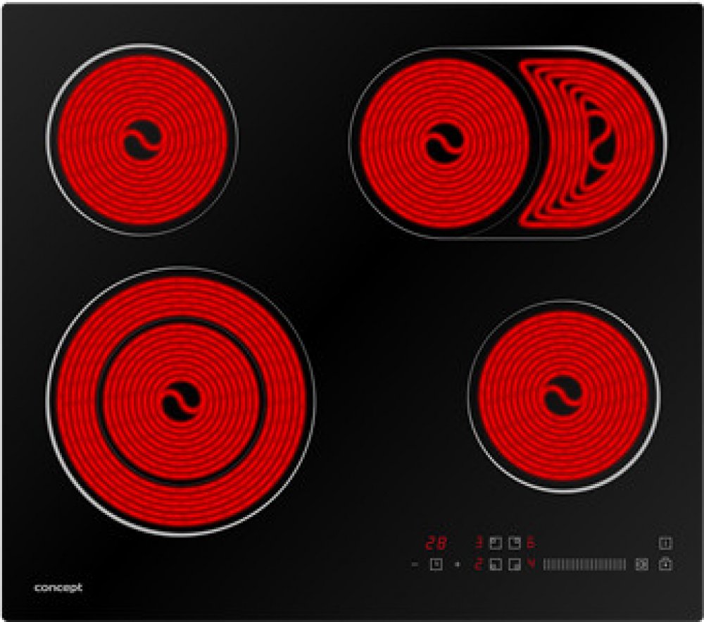 Sklokeramická varná deska CONCEPT SDV3860 umožňuje využití nádobí z nejrůznějších materiálů včetně skla, hliníku či litiny, a to bez ohledu na jejich specifický tvar. Deska je vybavena dvěma duálním flexi zónami (levá přední plotna + pravá zadní plotna), které přizpůsobí plochu ohřevu aktuální velikosti hrnce, čímž minimalizují energetické ztráty. Ovládání probíhá pomocí moderního dotykového slide...