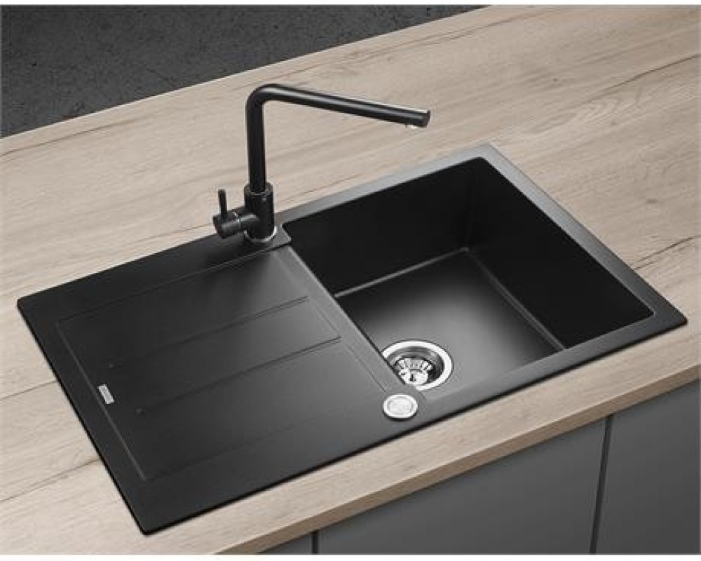 CONCEPT SET Dřez granitový s odkapem DG10C45bc + Baterie dřezová granit BDG4227bc