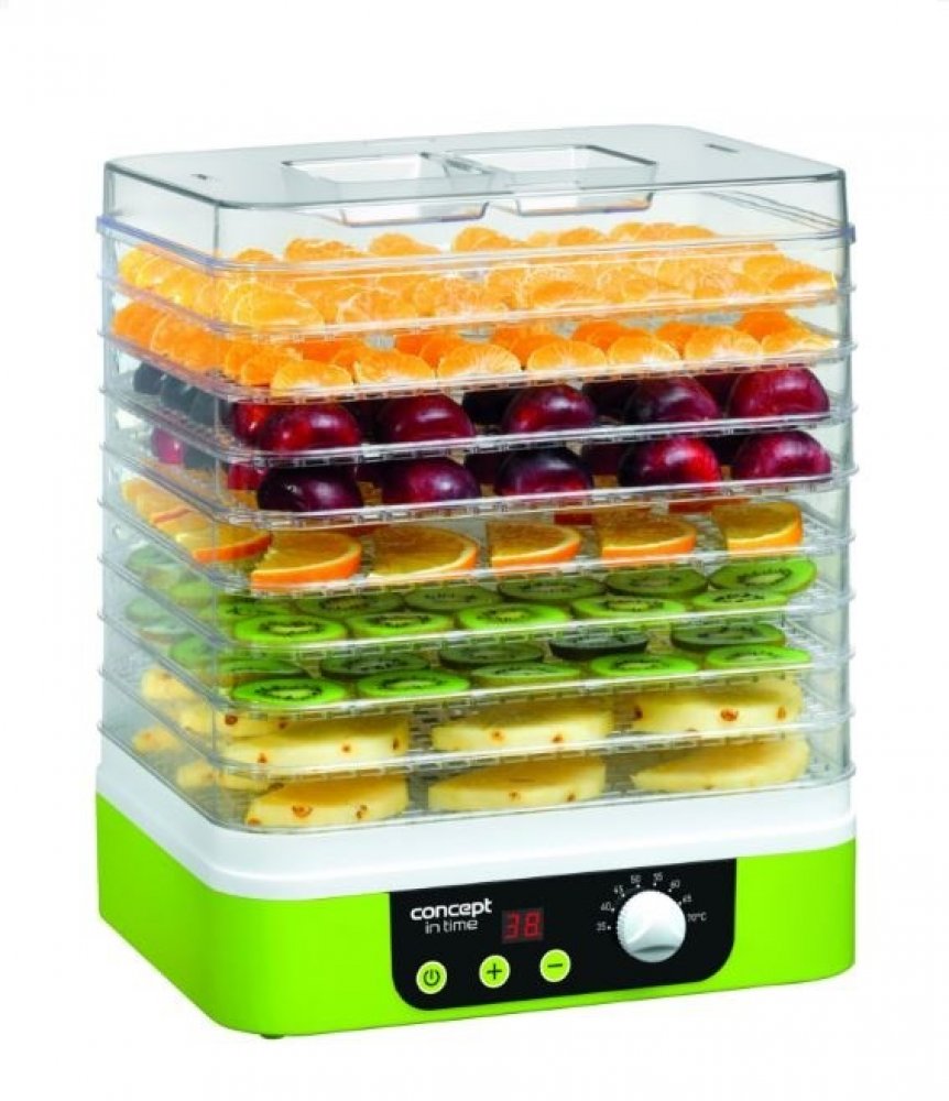 Sušička ovoce IN TIME s časovačem Concept SO1060 Regulace teploty od 35 do 70 °C Praktický obdélníkový tvar Časovač Uchovejte svou úrodu po celý rok Také máte radost z každého pěstitelského úspěchu v podobě ovoce a zeleniny? Předejděte tomu, že se vám bude obojí kupit v lednici či ve spíži a zpracujte je ještě začerstva – chutně a především zdravě. S praktickou sušičkou SO1060 si úrodu budete moci...