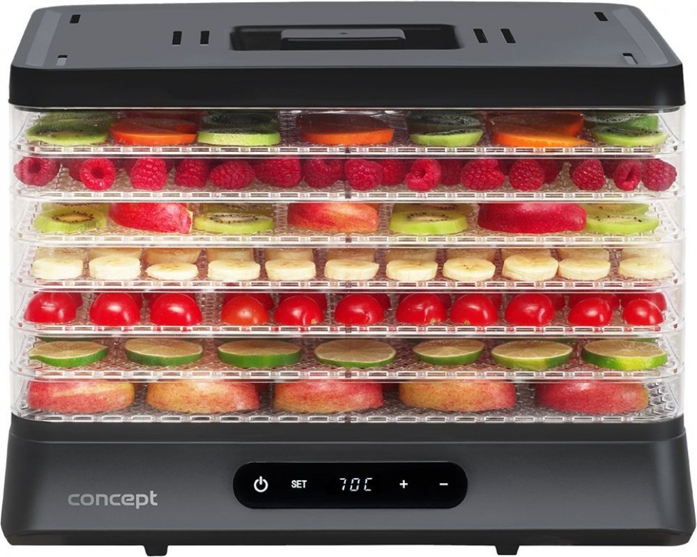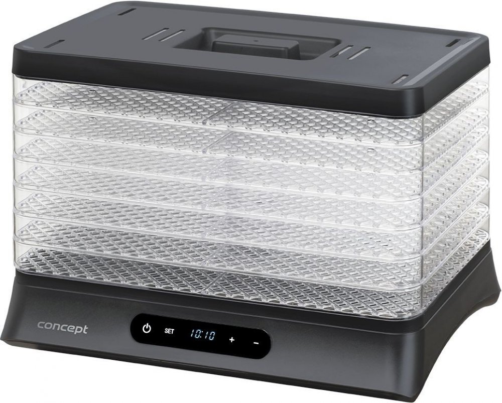 Sušička ovoce digitální 500 W SO2041 Elegantní kompaktní tvar Rovnoměrné sušení Forma na tyčinky Dostatek prostoru a velký výkon Překvapil vás letos nadbytek úrody? Nenechte se zaskočit a usušte ho. Sušička SO2041 s příkonem 500 W nabízí dostatečně velký prostor pro sušení. Stačí nakrájené potraviny rozložit na 7 transparentních plat, zvolit požadovanou teplotu a zapnout. Praktický hranatý tvar – pro lepší skladnost Prostor v kuchyni není nafukovací, a tak se úspora místa vždycky hodí. Díky svému hranatému tvaru je tato sušička velmi skladná a šetří místo na vaší kuchyňské lince. Obdélníková plata se navíc vejdou do myčky nádobí, takže nemusíte trávit čas jejich údržbou. Regulace teploty a času umožní sušení přesně podle vašich potřeb Obsluhu sušičky SO2041 zvládne díky jednoduchému digitálnímu ovládání opravdu každý. Umožňuje regulaci teploty v rozmezí od 35 do 70 °C, přesně dle aktuální potřeby. Je vybavena časovačem, který lze nastavit až na 48 h, takže budete mít sušení plně pod kontrolou. Po uplynutí nastavené doby sušení se sušička sama vypne. Prodlužte život vašim potravinám Sušení je jedna z mála metod uchování potravin, při které nedochází ke ztrátě důležitých vitamínů a minerálů. Proč tedy neprodloužit životnost potravinám, kterých máme aktuálně nadbytek? Např. malá špetka voňavého houbového prášku ze sušených hub dokáže udělat s vaším jídlem doslova zázraky. Sušit můžete téměř vše, od ovoce, zeleniny, přes těstoviny, květiny a maso. V sušičce snadno vyrobíte i výborné pamlsky pro vaše domácí mazlíčky. Rovnoměrné sušení ve všech patrech sušičky Integrovaný ventilátor se speciálně tvarovanými průduchy je zárukou dokonalého výsledku. Vaše úroda bude dokonale usušena, a to ve všech patrech sušičky. Zdravé mlsání po celý rok Připravte si doma müsli tyčinky přesně podle vaší chuti. Díky silikonové formě to bude hračka. Fantazii se meze nekladou a výsledek ocení celá rodina. Technické parametry: Sušení ovoce, zeleniny, hub, bylin, květin, ryb a těstovin Silikonová forma pro výrobu domácích müsli tyčinek Plynulé nastavení teploty sušení na 35 – 70°C Počet plat: 7 Digitální ovládání Ventilátor pro rovnoměrné sušení Krok nastavení: po 10 minutách Časovač: 10 min. – 48 hodin Digitální ovládání Sušicí plocha: 0,7 m2 Pojistka proti přehřátí Tichý provoz: 50 dB Rozměry plat: 39 x 26,5 x 2,5 cm Barva: šedá Příkon: 500 W