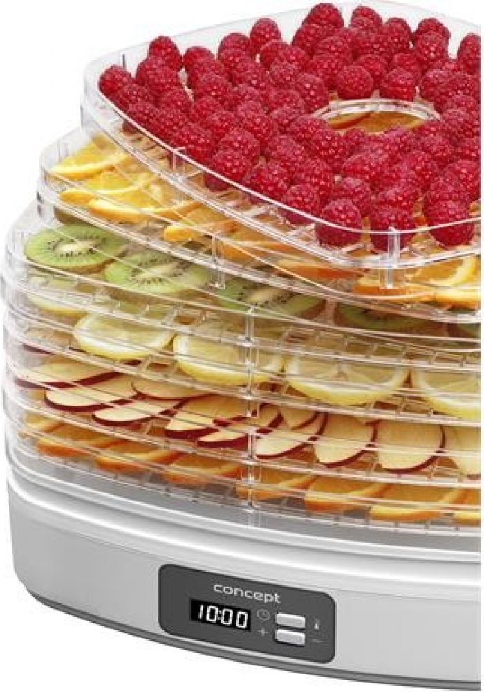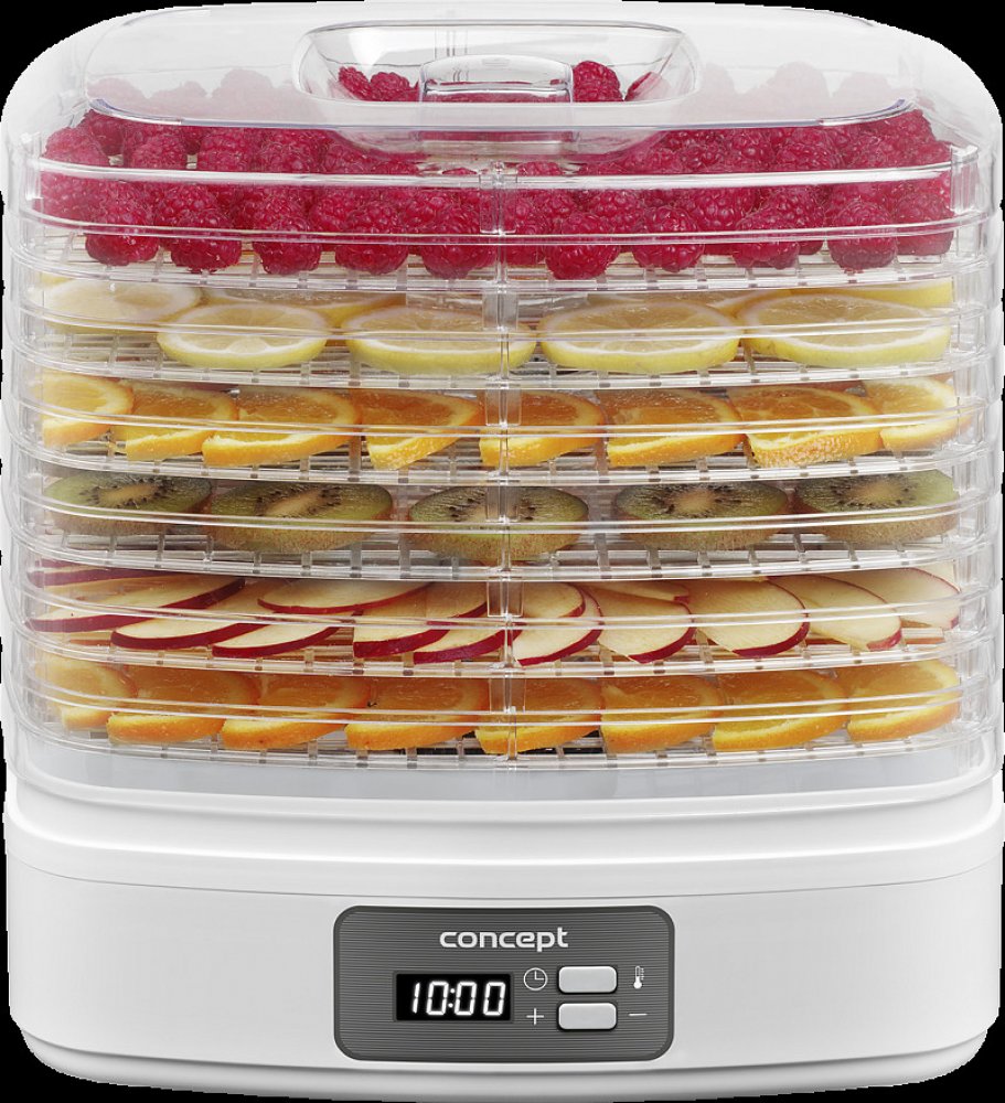 Sušička ovoce 260 W Concept SO2080 Kompaktní rozměry Univerzální nastavení plat Časovač Kompaktní sušička s 6 platy, které můžete mýt v myčce nádobí Sušička ovoce SO2080 s příkonem 260 W disponuje 6 transparentními platy. Díky svému hranatému tvaru je velmi skladná a šetří místo v kuchyni. Obdélníková plata se navíc vejdou do myčky nádobí, takže nemusíte trávit čas jejich údržbou. Regulace teploty...
