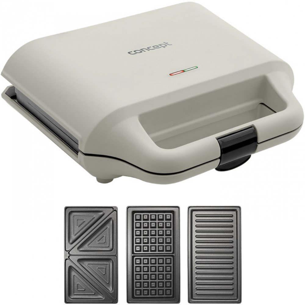 Toustovač 3v1 Concept SV3056 v elegantním béžovém designu vám pomůže s rychlou přípravou snídaně, obědu, svačiny i večeře.