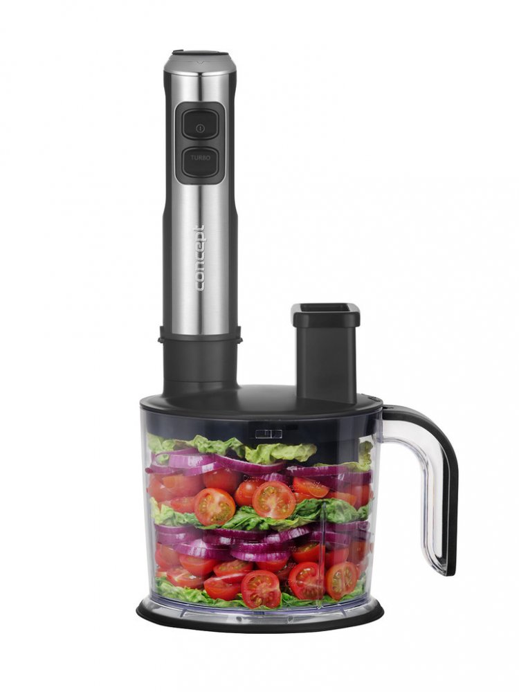 Mixuje, šlehá, míchá, seká, drtí, strouhá. Tyčový mixér Concept TM5500 zvládne vše. S vysoce výkonným 1500 W motorem patří mezi nejsilnější tyčové mixéry na trhu. Nic ho nezastaví a s lehkostí si poradí i s nejtvrdšími surovinami, jako jsou ořechy, mražené potraviny nebo led. Ulehčete si život v kuchyni s tyčovým mixérem, který vám bude vždy při ruce.