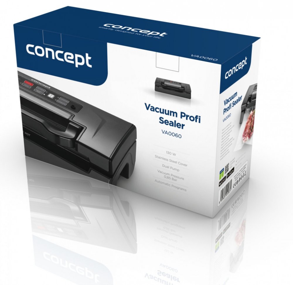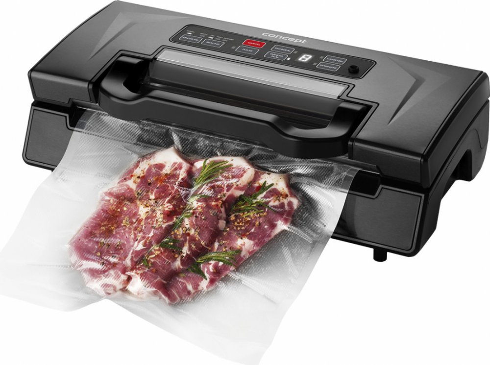 Vakuovačka PROFI Concept VA0060 Pro suché i vlhké potraviny Vakuování potravin v dózách Integrovaná fólie Zachovejte čerstvost vašich potravin Vakuová svářečka fólií prodlouží životnost vašich potravin. Zamezí přístupu vzduchu, čímž zabraňuje ztrátě důležitých látek obsažených v potravinách a současně uchová jejich čerstvou chuť a aroma. Tímto způsobem skladování potravin zároveň šetříte místo ve vaší lednici i mrazáku. Vakuování můžete využít také při přípravě sous-vide nebo pro urychlení marinace masa. Součástí balení je integrovaná vakuovací fólie a hadička k vakuování potravin v nádobách. Kvalitní zpracování Vakuová svářečka VA0060 je osazena kvalitním DC motorem, který se podílí na skvělém výkonu. Disponuje podtlakem 0,85 barů a dvojitým svárem pro perfektního utěsnění. Nabízí 7 provozních režimů. Umožňuje vakuování suchých i vlhkých potravin a vakuování potravin v dózách. Každá funkce má své vlastní tlačítko, takže ovládání je velmi jednoduché a intuitivní. Vac and seal Touto funkcí spustíte automatické odsávání vzduchu a následné svaření sáčku. Pulse vacuum Tímto tlačítkem budete mít přesnou kontrolu nad odsáváním. Jeho stisknutím odsávání spustíte, uvolněním bude odsávání přerušeno. Můžete si tak přesně regulovat podtlak v sáčku. Díky tomu zamezíte např. rozmačkání křehkých potravin. Sealing time a Pressure Funkcí Sealing time nastavíte nejvhodnější čas odsávání podle struktury potravin: Dry – pro suché potraviny, Moist – pro středně mokré potraviny, Extended – pro mokré potraviny s větším množstvím tekutin. Funkce Pressure slouží k nastavení vhodného tlaku odsávání: Normal button – pro standardní tlak, Gentle button – mírnější tlak odsávání pro křehké potraviny. Manual seal Slouží pro zatavení fólie. Během této funkce svářečka neodsává vzduch, pouze svaří sáček. Při stisknutí v průběhu odsávání v programu Vac and seal vakuovačka přestane odsávat a začne svářet. Marinate Marinování ve vakuu je nejlepší a nejzdravější způsob uchování masa před grilováním. Vakuování způsobí, že se póry masa otevřou a lépe absorbují marinádu, takže je maso rychleji nachystané k přípravě. Pokud marinujete maso ve vakuovacích nádobách, funkce Marinate nastaví ideální tlak pro odsávání. Technické parametry: Multifunkční kuchyňský pomocník DC motor pro maximální výkon Horní kryt z tmavého nerezu Přehledný displej s přednastavenými programy 2,5 mm široký dvojitý svár pro maximální utěsnění Správné umístění vakuovací fólie zajistí zaklapávací madlo Podtlak: 0,85 bar Barva: černá Příkon: 130 W Napětí: 220-240 V ~ 50 Hz Příslušenství: Vakuovací fólie Odsávací hadička Řezací nůž Dokoupitelné příslušenství: Sada fólií pro vakuové balení 2 ks VB2203 Sada fólií pro vakuové balení 2 ks VB2806 Sada zip sáčků pro vakuování 12 ks VB2635