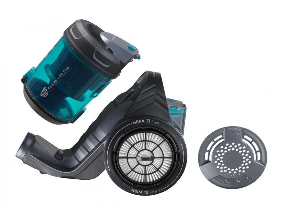 Bezsáčkový vysavač Furious Animal 800 W Concept VP5151 EXTRA výkon Na všechny typy podlah Malý turbokartáč EXTRA výkon Bezsáčkový vysavač Furious Animal Concept VP5151 je osazen vysoce účinným ECO motorem o příkonu 800 W, který má dostatečný výkon pro perfektní úklid celé domácnosti. Sací sílu můžete jednoduše upravit díky elektronické regulaci. Síla cyklónu Systém cyklónu spočívá v odstředivé síle působící při rotaci vysávaného vzduchu na nečistoty a jejich následné odstředění do sběrné nádoby. Hlavní výhodou cyklonových vysavačů je absence sáčků a jejich neměnný výkon při vysávání. Navíc během úklidu nedochází k víření prachu. Omyvatelný HEPA filtr 13 zachytí i ty nejjemnější prachové částice, takže je vhodný i pro alergiky a astmatiky. Snadná údržba Cyklonový vysavač VP5151 nevyužívá klasických sáčků, ale sběrnou nádobu o objemu 2 l. Nemusíte tedy sáčky neustále dokupovat, čímž ušetříte nemalé peníze. Plnou nádobu stačí jednoduše stiskem tlačítka uvolnit, vysypat a opět nasadit. Univerzální podlahová hubice S univerzální podlahovou hubicí dokonale vysajete veškeré koberce, předložky, běhouny nebo čalouněný nábytek. Po přepnutí klapky a vysunutí štětin šetrně uklidí i tvrdé podlahy. Malý turbokartáč Malý turbokartáč je ideální volbou pro úklid po vašich chlupatých mazlíčcích. Díky jedinečné konstrukci dokáže kartáčovat a vysávat zároveň, takže snadno odstraní každý chlup z čalouněného nábytku a ze všech míst, kam se s velkou hubicí nedostanete. Účinný HEPA filtr navíc zachytí nežádoucí bakterie a alergeny. Vždy při ruce Součástí základní výbavy je i drobné příslušenství, které je šikovně usazeno v praktickém držáku přímo na teleskopické trubce vysavače. Patří sem štěrbinová hubice na úklid špatně dostupných míst (radiátory, zásuvky, prostor mezi matracemi a čalouněním apod.) a hubice s kartáčkem na šetrné odstranění prachu z nábytku, žaluzií, parapetů, knih nebo klávesnice. Technické parametry: Příkon: 800 W Objem prachové nádoby: 2 l Regulace výkonu Kovové teleskopické trubky Ohebná hadice Měkká zadní kola HEPA filtr 13 Délka kabelu: 6 m Akční rádius: 9 m Vertikální a horizontální parkovací poloha Automatický naviják kabelu Hmotnost: 2,6 kg (bez příslušenství) Hlučnost: 78 db Barva: tyrkysová Příslušenství: Podlahová hubice Malý turbokartáč Štěrbinová hubice Hubice s kartáčkem Držák příslušenství
