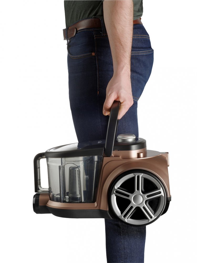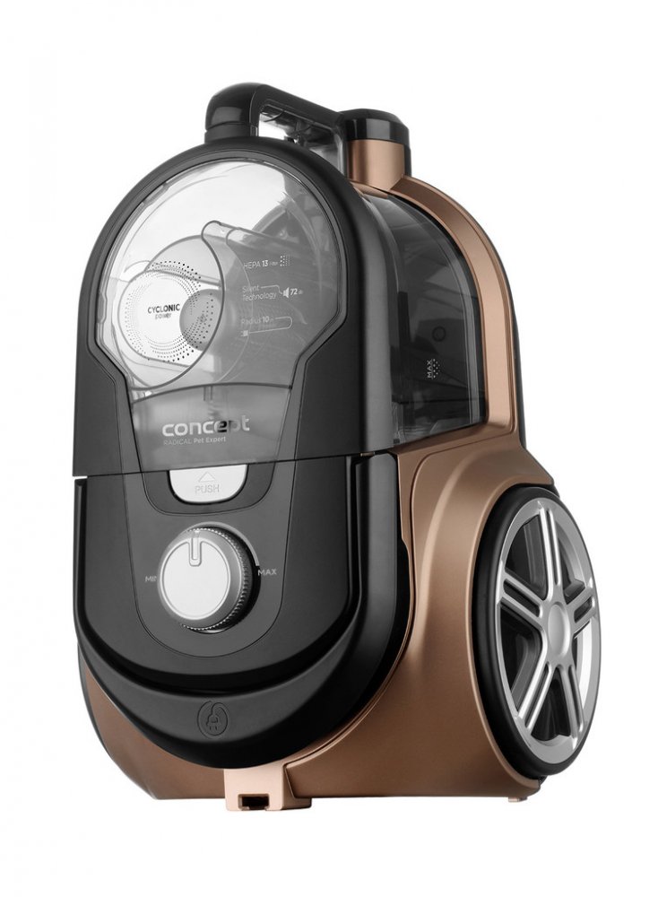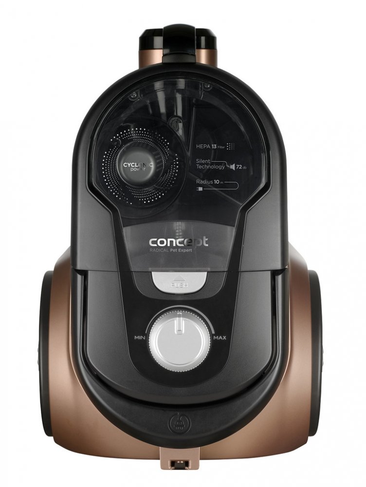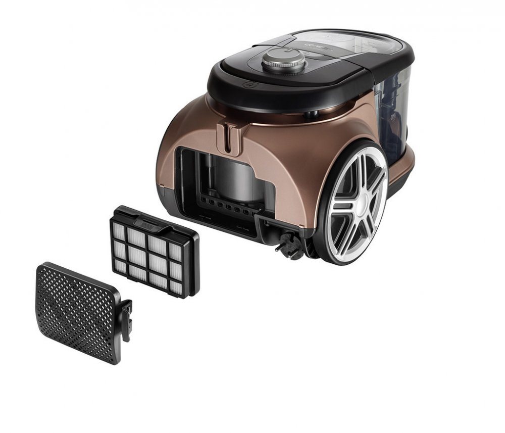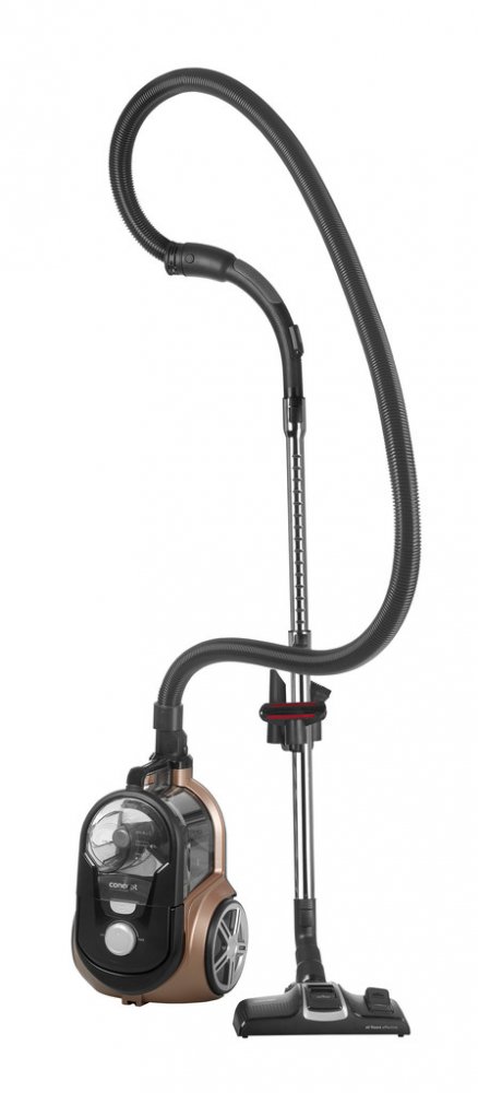 Bezsáčkový vysavač je osazen vysoce účinným ECO motorem o příkonu 800 W, který má dostatečný výkon pro perfektní úklid celé domácnosti. Sací sílu můžete jednoduše upravit díky elektronické regulaci. Systém cyklónu spočívá v odstředivé síle působící při rotaci vysávaného vzduchu na nečistoty a jejich následné odstředění do sběrné nádoby. Hlavní výhodou cyklonových vysavačů je absence sáčků a jejich neměnný výkon při vysávání. Navíc během úklidu nedochází k víření prachu. Omyvatelný HEPA filtr 13 zachytí i ty nejjemnější prachové částice, takže je vhodný i pro alergiky a astmatiky.