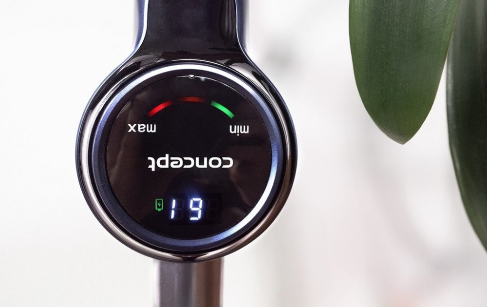 Dobíjecí Li-Ion baterie s kapacitou 2200 mAh dodává vysavači maximální volnost pohybu. Vybírat můžete ze tří režimů. Po spuštění pracuje na nejnižší výkon, který je vhodný na běžný úklid tvrdých podlah. Sací síla dosahuje 10 kPa a výdrž na jedno nabití až 40 minut. Na koberce a silně znečištěné povrchy doporučujeme používat maximální výkon se sací silou 20 kPa, u kterého je však nutné počítat s kratší provozní dobou. Na digitálním displeji vidíte zvolený režim i aktuální stav baterie v procentech. Nechybí ani indikátor plné prachové nádoby a zaseklého kartáče.
