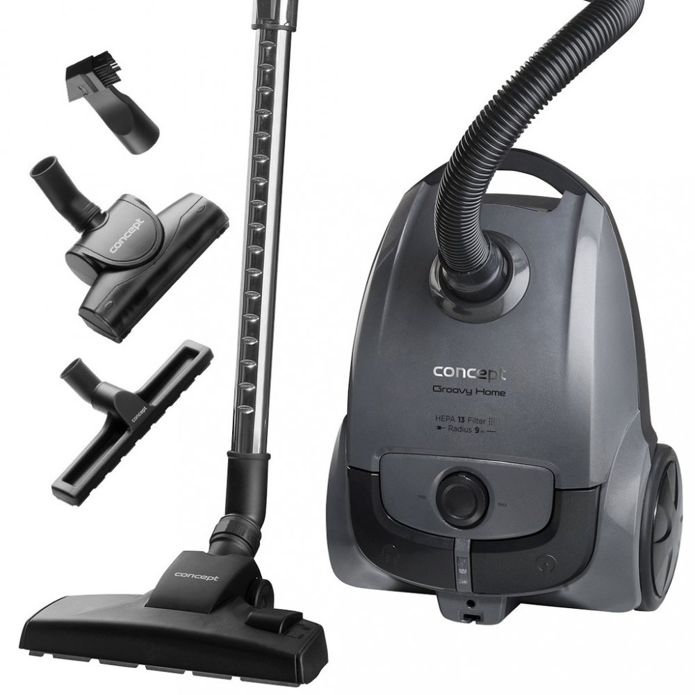 Sáčkový vysavač Groovy Home 700 W Concept VP8338 Široké příslušenství Akční rádius 9 m HEPA filtr 13 EXTRA výkon Sáčkový vysavač Groovy Home VP8338 je osazen vysoce účinným ECO motorem o příkonu 700 W, který má zásluhu na vynikajícím sacím výkonu. Sací sílu můžete jednoduše upravit díky elektronické regulaci. Perfektně si poradí s úklidem tvrdých podlah i koberců. Je skvělým pomocníkem pro běžný ú...