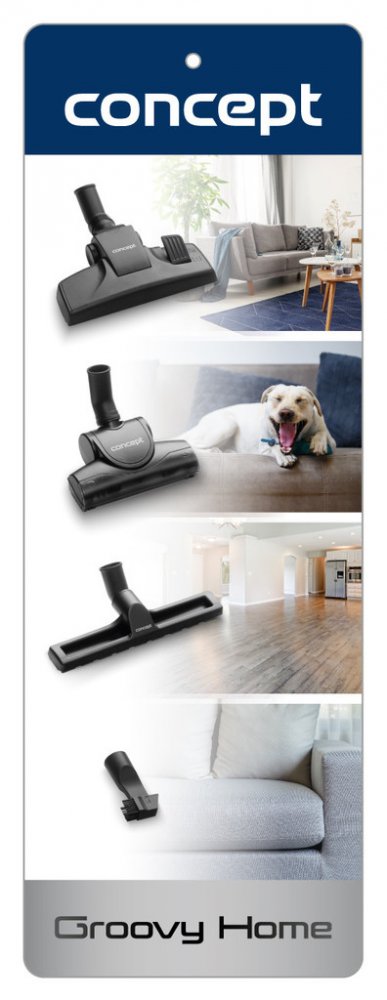 Sáčkový vysavač Groovy Home 700 W Concept VP8338 Široké příslušenství Akční rádius 9 m HEPA filtr 13 EXTRA výkon Sáčkový vysavač Groovy Home VP8338 je osazen vysoce účinným ECO motorem o příkonu 700 W, který má zásluhu na vynikajícím sacím výkonu. Sací sílu můžete jednoduše upravit díky elektronické regulaci. Perfektně si poradí s úklidem tvrdých podlah i koberců. Je skvělým pomocníkem pro běžný úklid a díky bohatému příslušenství ho ocení i majitelé chlupatých mazlíčků. Omyvatelný HEPA filtr 13 zachytí i ty nejjemnější prachové částice, takže je vhodný i pro alergiky a astmatiky. Úklid bez omezení Jedním z důležitých parametrů vysavače je akční rádius. Jedná se o vzdálenost, kam vysavač dosáhne při vysávání od elektrické zásuvky. Model VP8338 nabízí dosah 9 m, takže s ním pohodlně uklidíte i prostorné místnosti, aniž byste museli neustále měnit zásuvku. ECO podlahová hubice Inovovaná podlahová ECO hubice spolu s revoluční konstrukcí motoru zvyšuje účinnost vysávání. ECO podlahová hubice je určená k vysávání koberců, předložek a běhounů, po přepnutí klapky a vysunutí štětin i tvrdých podlah. Velký turbokartáč Vysajete celý byt, a přesto na kobercích nacházíte popadané vlasy? S velkým turbokartáčem, který kartáčuje a vysává zároveň, se vám to už nestane. Turbokartáč je ideální volbou na všechny typy koberců. Snadná je i samotná údržba, kartáč jednoduše rozeberete, vyčistíte a zase složíte. Parketová hubice Parketová hubice je určena pro úklid veškerých tvrdých podlah, které v domácnosti máte. Je speciálně navržena pro šetrný úklid, abyste si podlahu nepoškrábali nebo jinak nepoškodili. Štěrbinová hubice s prachovým kartáčkem Součástí základní výbavy vysavače je i speciální hubice 2 v 1, která je spojením štěrbinové hubice a prachového kartáčku. Můžete ji využít jako samostatnou štěrbinovou hubici na úklid špatně přístupných míst (radiátory, zásuvky, prostor mezi matracemi a čalouněním apod.) nebo přiklopit prachový kartáček a šetrně odstranit prach z nábytku, žaluzií, parapetů, knih nebo klávesnice. Antibakteriální XL sáček Extra velký sáček o objemu 3,5 l je vyroben z moderní SMS textilie, která má oproti klasickým papírovým sáčkům řadu nesporných výhod: má vysoké filtrační schopnosti, je ANTIBAKTERIÁLNÍ a nevadí jí zvýšená vlhkost. Šetří také motor vysavače. Vybavení vysavače HEPA filtrem 13 v místě, kde se vzduch vrací zpátky do místnosti, ocení zejména alergici. Filtr pohltí až 99,9 % roztočů, pylů a bakterií, které se během vysávání mohou dostat zpět do místnosti. Výsledkem je zdravější a čistější domácnost. Elegantní a praktický Vysavač je zpracován v elegantním červeném designu a díky přednímu, plně otočnému kolečku se hladce přizpůsobí každému vašemu pohybu. Pogumovaná zadní kola jsou šetrná k povrchu, takže nemusíte mít strach z poškrábání. Je vybaven praktickou rukojetí pro jednoduché přenášení a nabízí 2 parkovací polohy a 2 možnosti ukotvení podlahové hubice. Technické parametry: Příkon: 700 W Omyvatelný HEPA filtr 13 Velká kapacita sáčku: XL sáček 3,5 l 1x SMS sáček součástí balení Elektronická regulace výkonu Délka kabelu: 6 m Akční rádius: 9 m Délka teleskopických trubek: 78 cm Vertikální a horizontální parkovací poloha Pojistka proti zavření bez sáčku Automatický naviják kabelu Pogumovaná zadní kola Přední kolečko otočné o 360° Hmotnost: 4,4 kg (bez příslušenství) Hlučnost: 79 dB Barva: šedá Příslušenství: ECO podlahová hubice Velký turbokartáč Parketová hubice Štěrbinová hubice s prachovým kartáčem Dokoupitelné příslušenství: Náhradní sáčky SMS9000