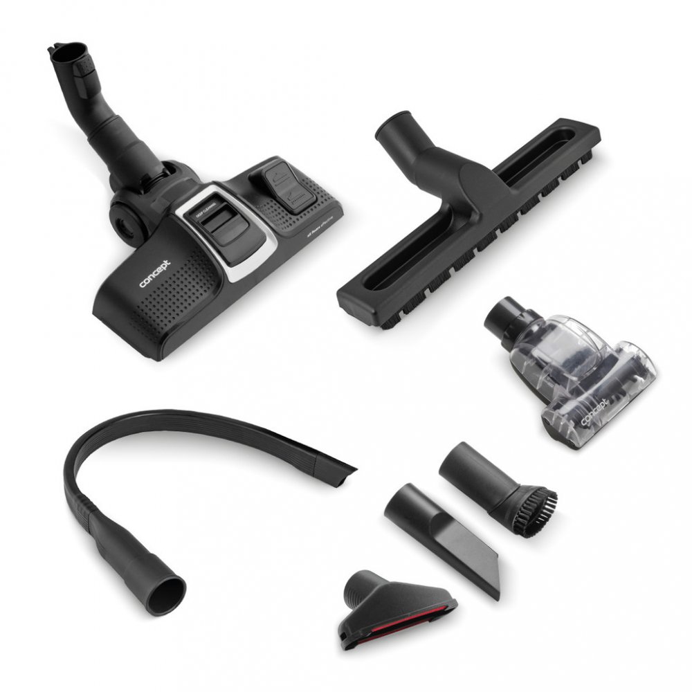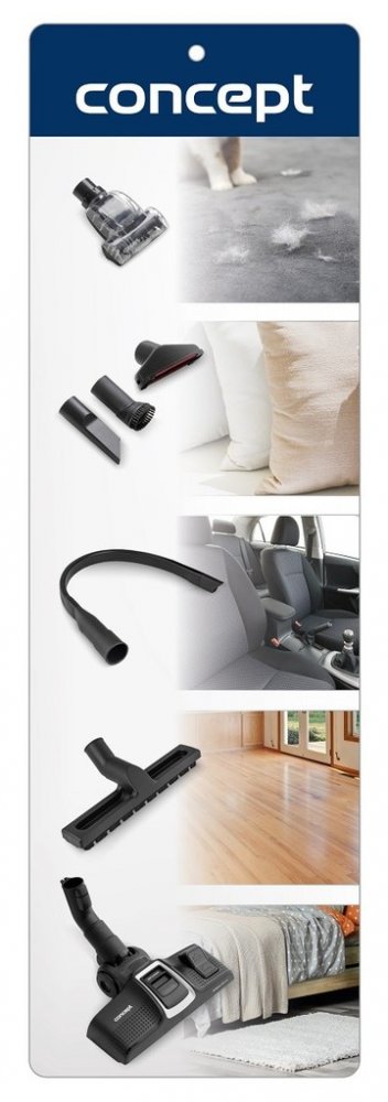 Součástí základní výbavy je i drobné příslušenství, které je šikovně usazeno v praktickém držáku přímo na teleskopické trubce. Patří sem štěrbinová hubice na úklid špatně dostupných míst (radiátory, zásuvky, prostor mezi matracemi a čalouněním apod.), hubice s kartáčkem na šetrné odstranění prachu z nábytku, žaluzií, parapetů, knih nebo klávesnice a hubice na čalounění, se kterou vysajete pohovky, křesla, matrace, úložné prostory i postele.