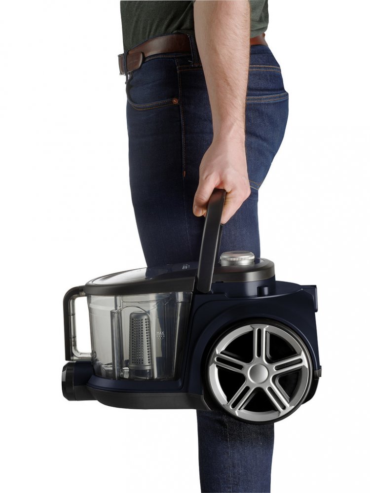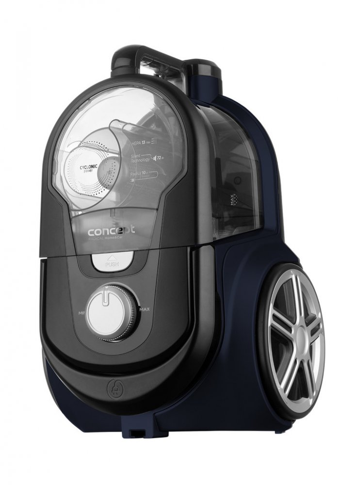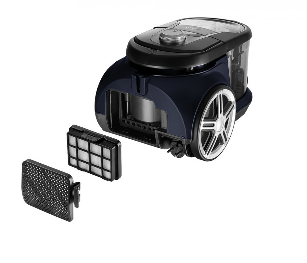 Bezsáčkový vysavač je osazen vysoce účinným ECO motorem o příkonu 800 W, který má dostatečný výkon pro perfektní úklid celé domácnosti. Sací sílu můžete jednoduše upravit díky elektronické regulaci. Systém cyklónu spočívá v odstředivé síle působící při rotaci vysávaného vzduchu na nečistoty a jejich následné odstředění do sběrné nádoby. Hlavní výhodou cyklonových vysavačů je absence sáčků a jejich neměnný výkon při vysávání. Navíc během úklidu nedochází k víření prachu. Omyvatelný HEPA filtr 13 zachytí i ty nejjemnější prachové částice, takže je vhodný i pro alergiky a astmatiky.
