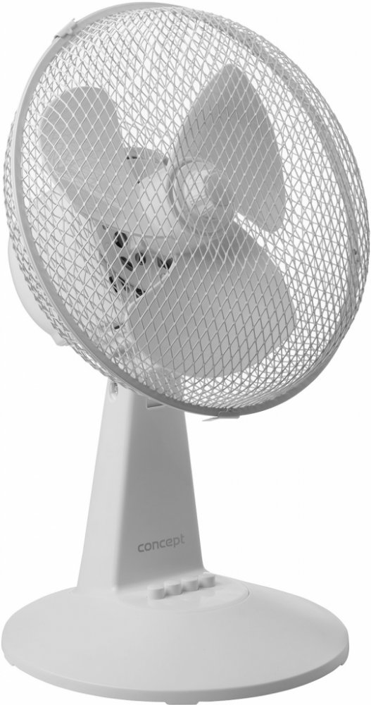 Panuje horký slunečný den a potřebujete se zchladit? Stolní ventilátor Concept VS5040 vytvoří příjemný vánek. Vyberete si jednu ze 3 rychlostí proudění vzduchu a věnujete se své práci či odpočinku. Směr si nastavíte horizontálně i vertikálně podle svých potřeb. Díky oscilaci v úhlu přibližně 80° ventilátor rovnoměrně šíří vzduch po místnosti.