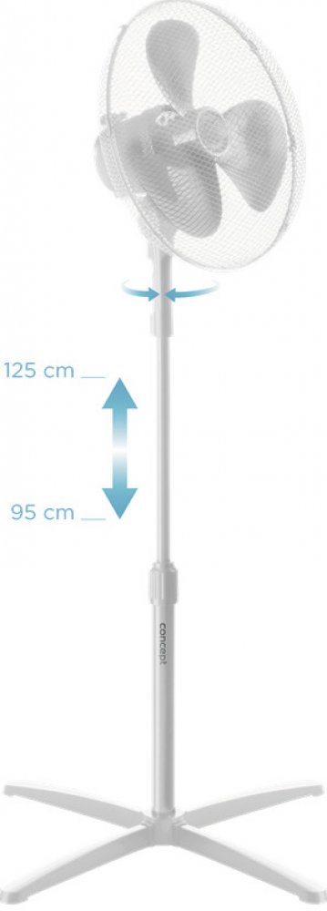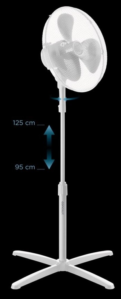 Stojanový ventilátor Concept VS5051 je praktickým pomocníkem pro horké letní dny. Díky nastavitelné výšce v rozmezí 95 až 125 cm si ho snadno upravíte tak, aby proudění vzduchu mířilo přesně tam, kam potřebujete. Ventilátor disponuje třemi stupni rychlosti, nastavitelným sklonem vrtule a oscilací v úhlu 80 ± 5°. Zajišťuje rovnoměrnou cirkulaci vzduchu a jeho tichý provoz oceníte doma i v kanceláři.