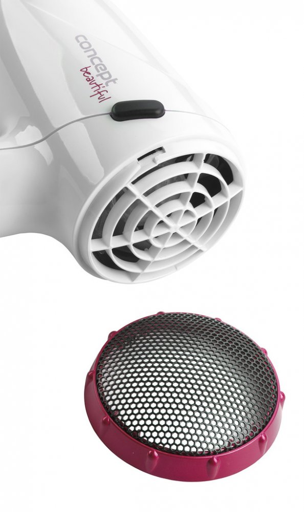 Fén na vlasy 1500 W Concept VV5740 Ideální na cesty Funkce Cool shot 3 barevné varianty Ideální na cesty Vysoušeče vlasů z řady Beautiful VV5740/41/42 jsou ideální volbou na cesty. Díky své kompaktní velikosti a sklopnému držadlu zaberou minimum místa ve vašem zavazadle. Dokonalý účes Fén nabízí výběr ze dvou stupňů výkonu a dvou různých teplot. Dokonalého tvarování vlasů docílíte pomocí koncentrátoru, který usměrní proud vzduchu do požadovaného místa. Oblíbená je funkce Cool shot, která prudkým ochlazením vzduchu zafixuje vaše vlasy, čímž dosáhnete delší trvanlivosti svého účesu. Snadné čištění Fén disponuje odnímatelnou mřížkou na nasávání vzduchu, díky které budete mít fén během okamžiku vyčištěný. Stačí mřížku sejmout, vyčistit štětečkem nebo propláchnout vodou, usušit a vrátit zpět. 3 barevné varianty Vysoušeč vlasů je nabízen ve 3 barevných provedení. Sjednocuje je design bílého těla fénu s černým odnímatelným koncentrátorem. Jednotlivé modely se liší barevným detailem – VV5740 růžovým, VV5741 modrým a VV5742 zeleným. Technické parametry: Ideální na cesty (sklopné držadlo, kompaktní rozměry) Kontrolka teploty 2 stupně nastavení teploty 2 rychlostní stupně Funkce Cool shot Očko na zavěšení Koncentrátor Délka přívodního kabelu: 1,58 m Příkon: 1500 W Barvy: bílá + růžová + černá
