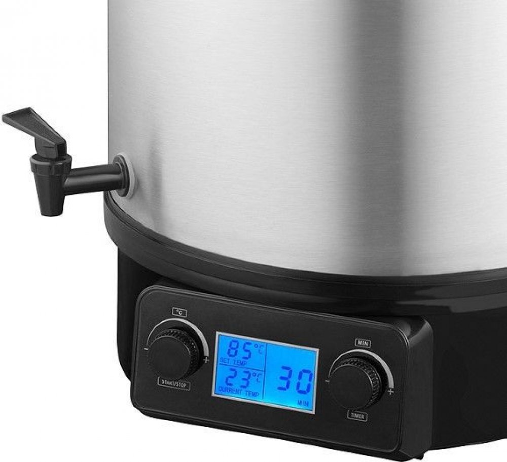Zavařovací hrnec ZH0040 je plně automatický. Disponuje dvěma ovládacími knoflíky pro nastavení teploty a času. Teplotu můžete plynule regulovat od 30 do 100 °C a časový spínač umožňuje nastavení v rozmezí od 1 do 120 minut nebo lze zvolit nepřetržitý provoz. Nastavené údaje můžete kontrolovat na přehledném LCD displeji. Na konec programu vás upozorní zvuková signalizace.